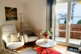 Die Ferienwohnung mit 50 qm verfügt über einen großzügigen Wohn-Schlafbereich mit einem gemütlichen Boxspringbett (180x200) und