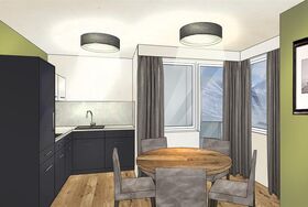 Unsere großzügiges Appartement (ca. 80 m²) verfügen über zwei Schlafzimmer mit jeweils einem eigenem Badezimmer und Toilette, einem Wohnschlafzimmer, voll ausgestattete Küche mit Essecke, sowie Balkon oder Terrasse.