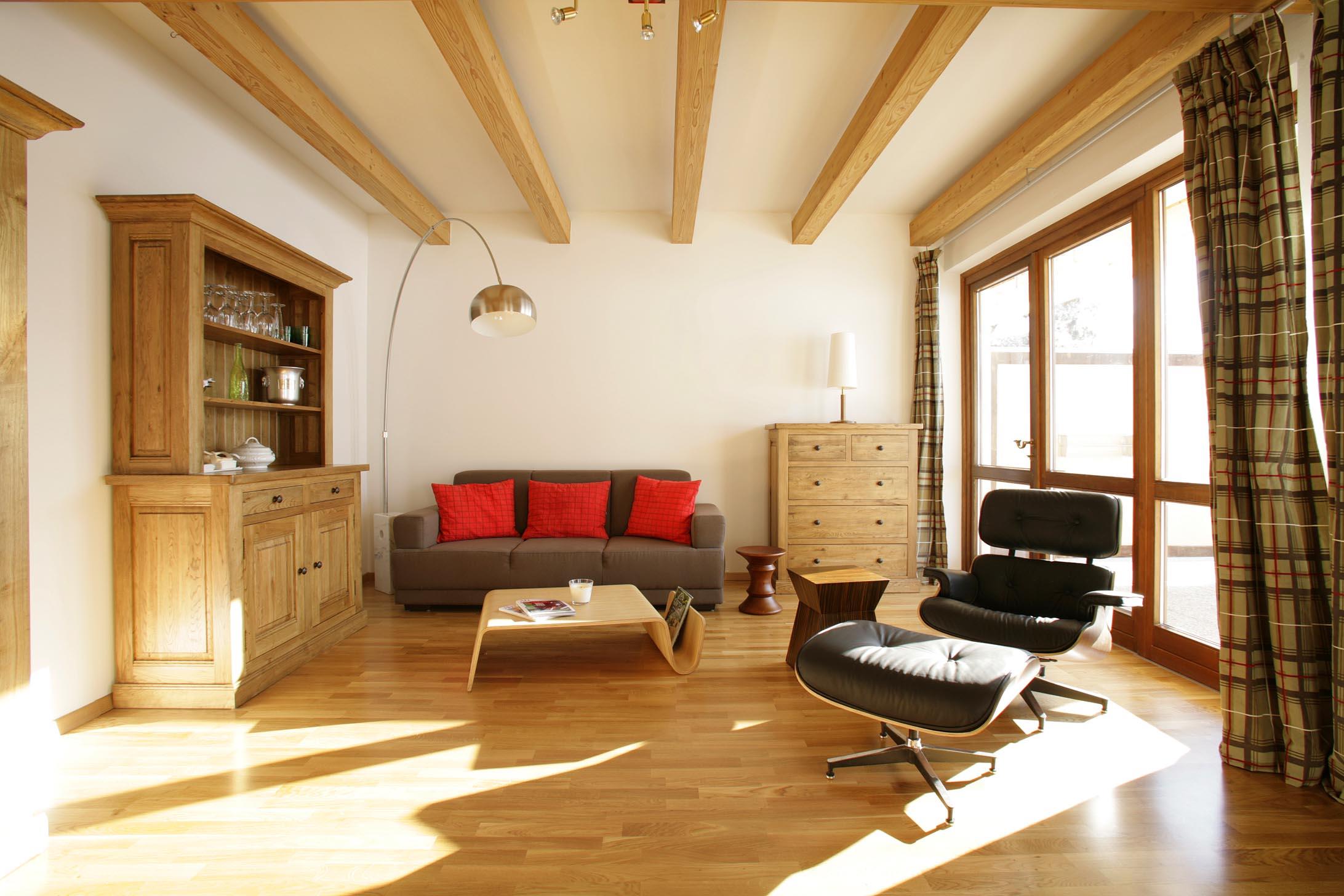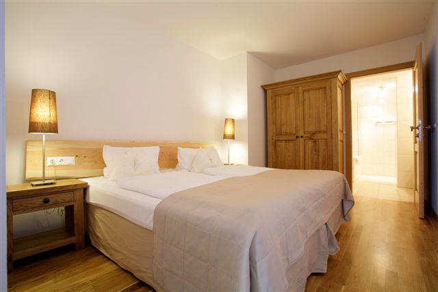 ca. 60 m² große Ferienwohnung, Schlafzimmer, Bad, Küche, Wohnzimmer, zur Seeseite mit Balkon.