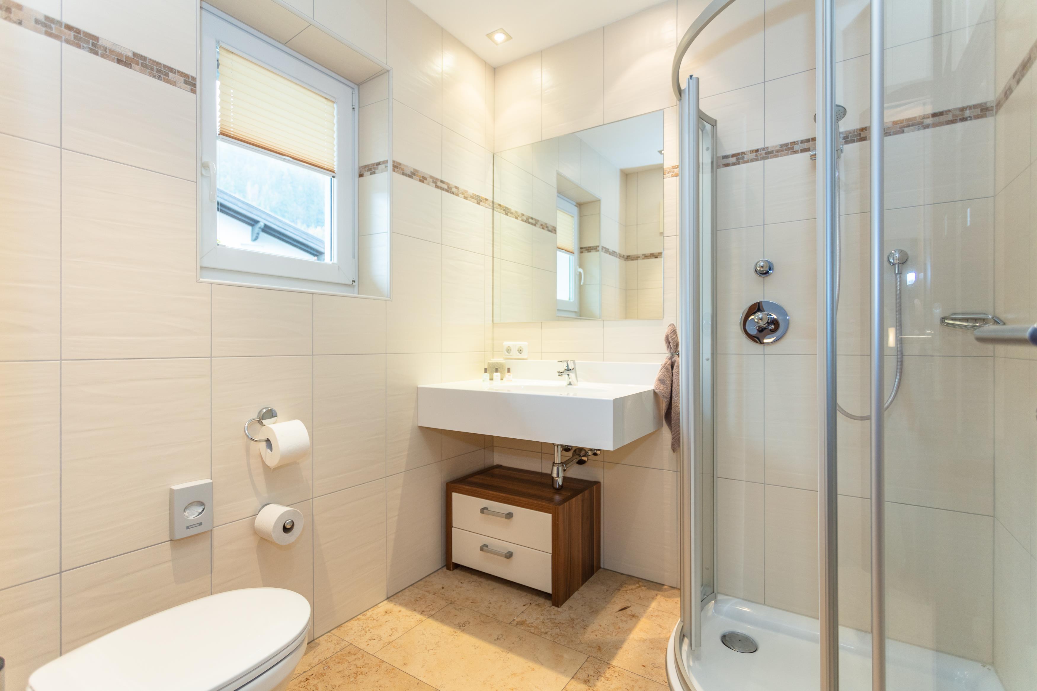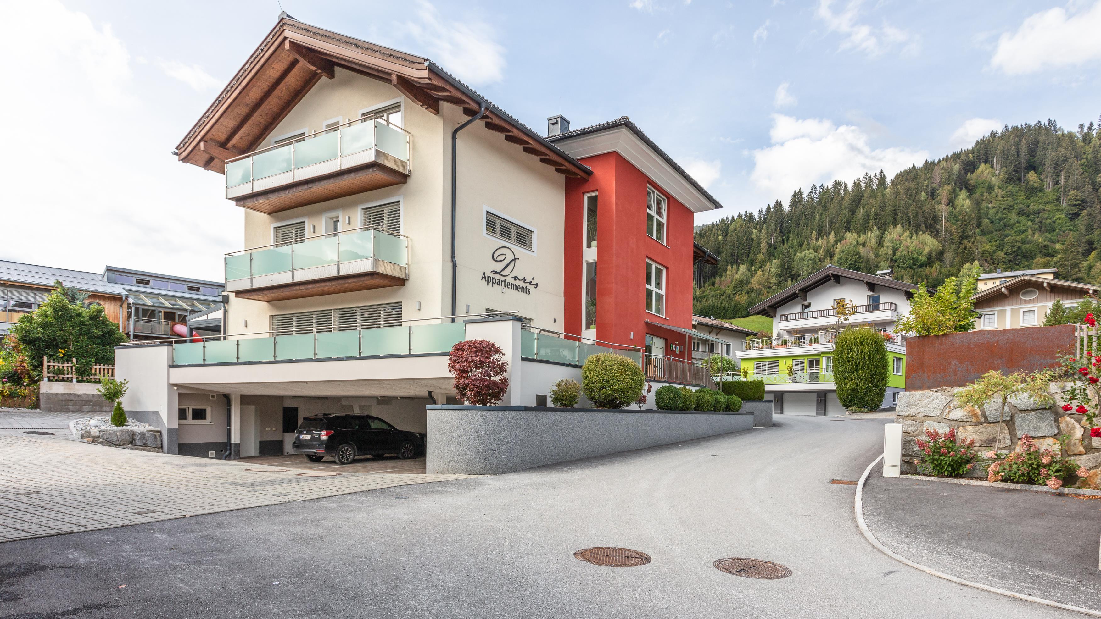 Dieses gut 68 m² Appartement befindet sich im 1. Stock des Hauses und ist gemütlich vom Garageneingang mit dem Aufzug zu erreichen. Die Räumlichkeiten sind großzügig gestaltet und beinhalten 1 großen Wohn- und Aufenthaltsbereich samt Kabel-TV u. Essecke, eine Küche, eine Garderobe im Eingangsbereiche, ein getrenntes WC, 2 Schlafzimmer mit je einem Doppelbett und 2 getrennte Badezimmer (Badewanne/Dusche). Weiters laden 2 gemütliche Balkone zum Entspannen ein.
