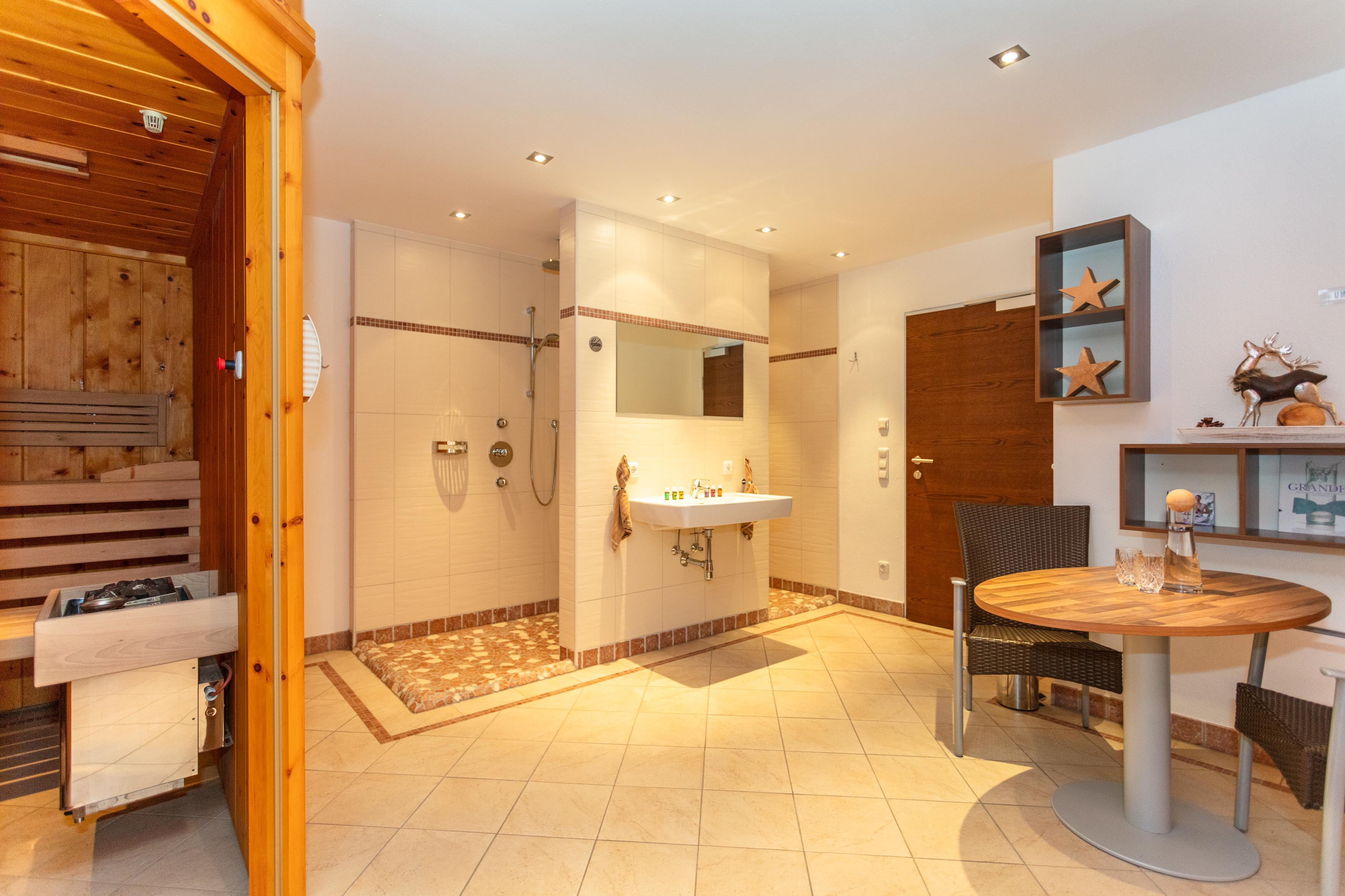 Auch für genügend Entspannung sei gesorgt! Unser hauseigener WELLNESS- und RUHERAUM ist ausgestattet mit einer Sauna und einer Wärmekabine sowie Duschen und Ruheliegen!