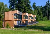 Die vier, zweistöckigen Chalets Reihen sich am oberen Waldrand entlang. In Ständerbauweise erbaut, fügen Sie sich perfekt in die Landschaft ein.