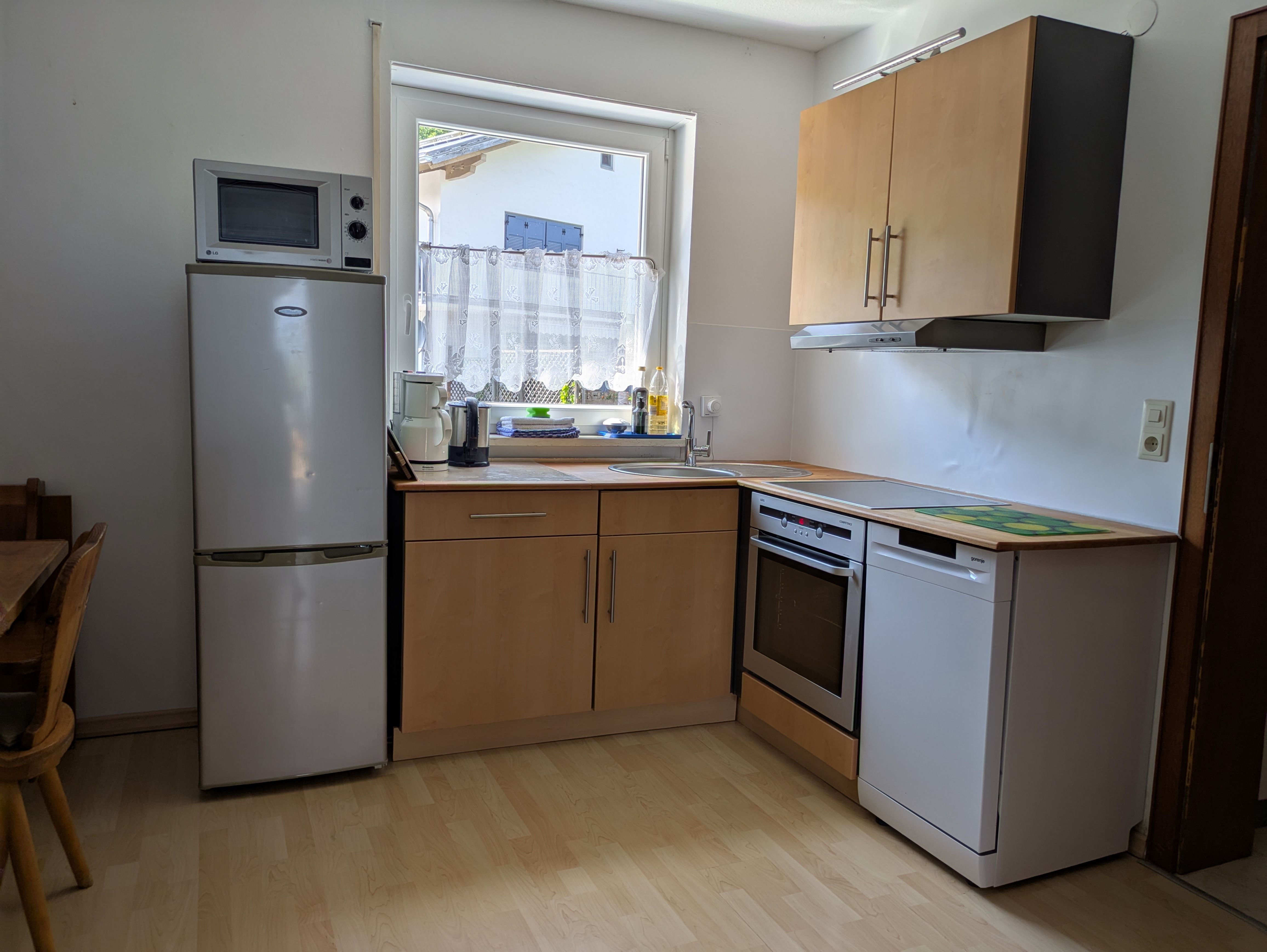 Herzlich willkommen in unserer gemütlichen Ferienwohnung. Die Wohnung liegt im ersten Stock eines Mehrfamilienhauses und bietet Ihnen einen traumhaften Blick vom Balkon auf üppige Wiesen, grüne Wälder und das beeindruckende Bergpanorama. Das Herzstück der Wohnung ist der geräumige Wohn- und Essbereich, der einladend gestaltet ist und zum Verweilen einlädt. Die gut ausgestattete Küche bietet ausreichend Platz, um gemeinsam köstliche Mahlzeiten zuzubereiten. Im Wohnzimmer finden Sie eine Schlafcouch (140cm x 200 cm) mit einem zusätzlichen Topper, die sich mit wenigen Handgriffen in ein bequemes Bett verwandeln lässt. Dies stellt den zusätzlichen Schlafbereich dar, ideal für einen Aufenthalt mit vier Gästen. Zudem ist ein TV-Gerät vorhanden, um entspannte Abende zu genießen. Das große Schlafzimmer ist mit einem komfortablen Doppelbett ausgestattet. Auf Wunsch stellen wir Ihnen gerne ein Kinderreisebett mit Bettwäsche zur Verfügung, damit auch die kleinen Gäste sich wohlfühlen.Das Badezimmer verfügt über eine begehbare Dusche. Das W-LAN nutzen Sie natürlich kostenfrei. Die Küche ist vollständig ausgestattet und beinhaltet Reinigungsmittel sowie Tabs für die Spülmaschine. Ein Staubsauger und ein Wäscheständer sind ebenfalls vorhanden. Auf Anfrage stellen wir Ihnen gerne die Waschmaschine zur Verfügung und bieten Hochstühle für die kleinen Gäste an. Wir freuen uns darauf, Sie in unserer Ferienwohnung willkommen zu heißen und wünschen Ihnen einen unvergesslichen Aufenthalt!