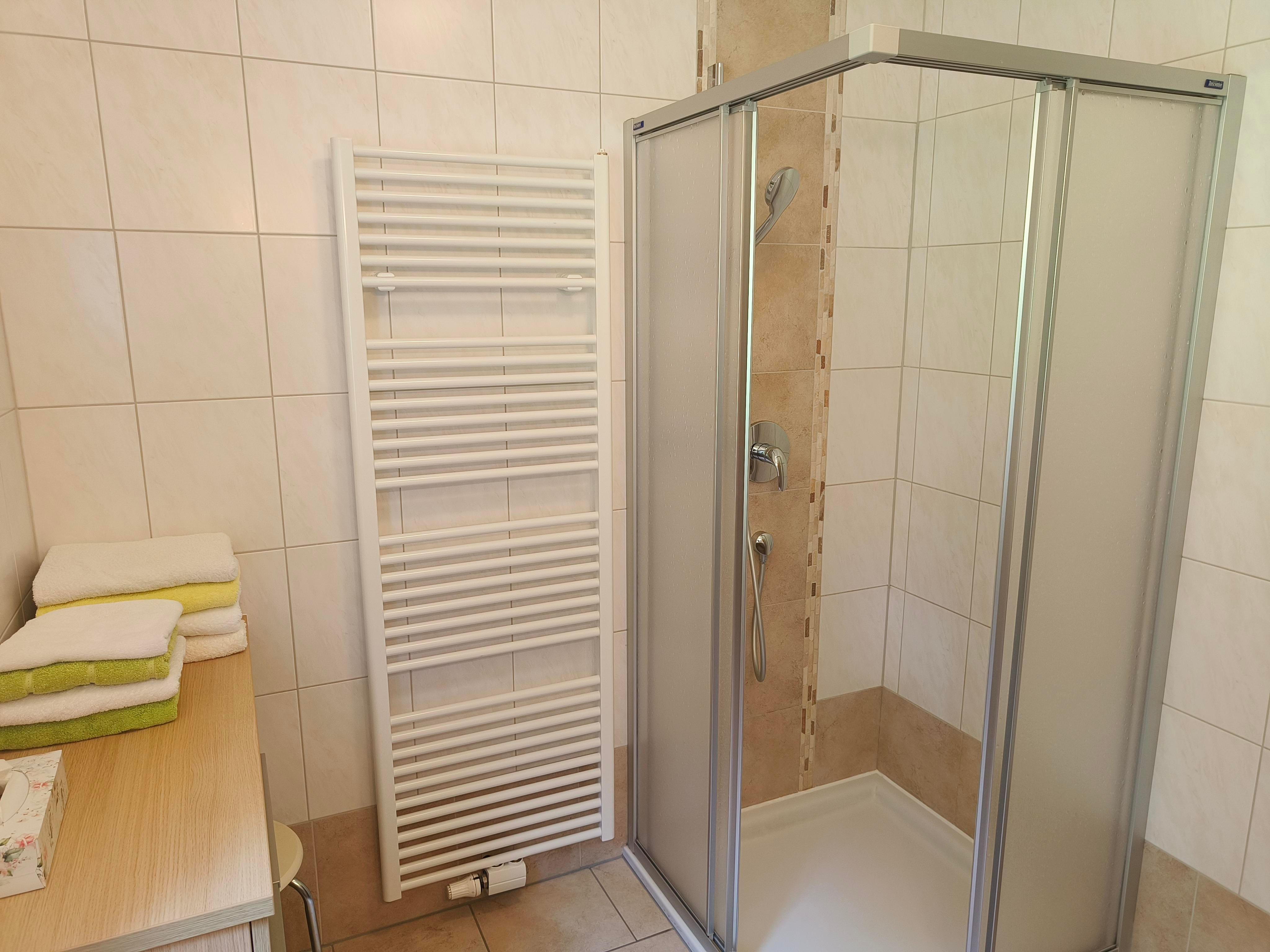 Ferienwohnungen im Neubau. Modern eingerichtet mit getrennten Schlafzimmern, Wohnküche und eigenem abgeschlossenen Balkon mit Sitzgelegenheit. Blick zum Pool.