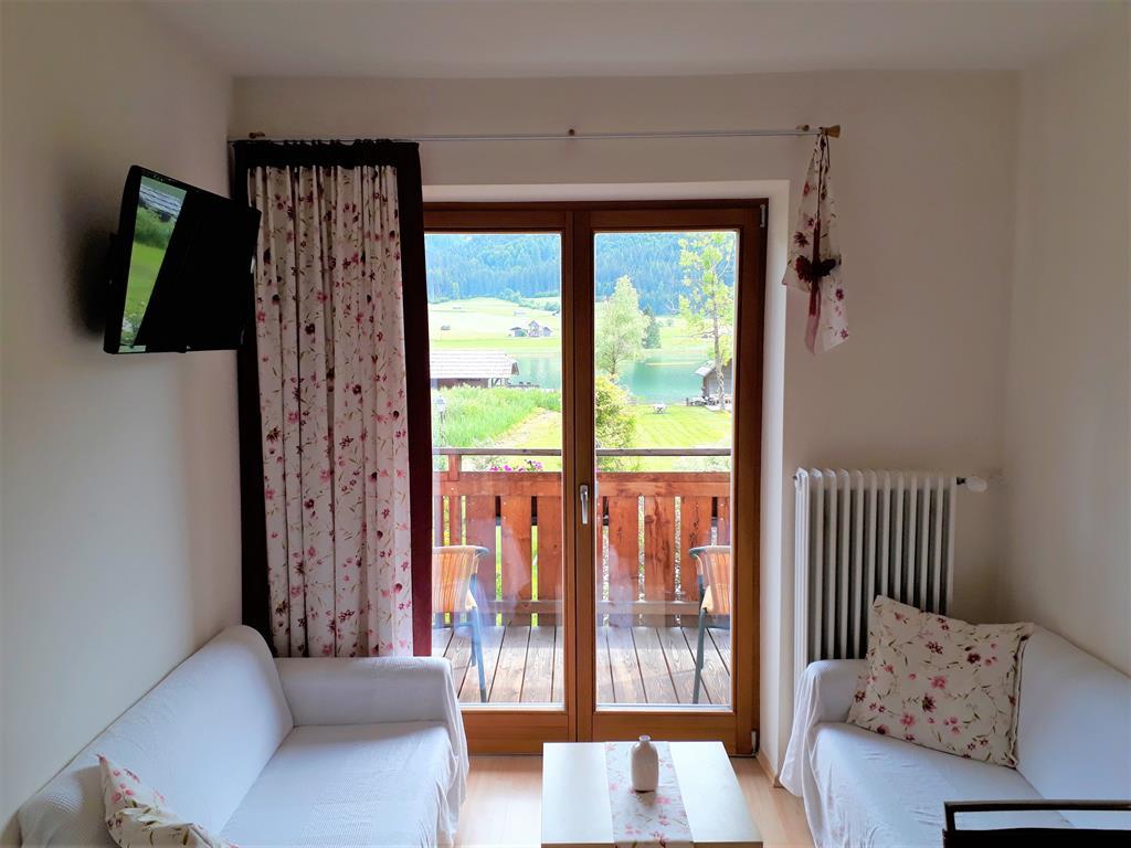 Die „Seeblick gross“ Ferienwohnung hat ca.55,7m² liegt im 1.Stock und ist für 4 Personen.