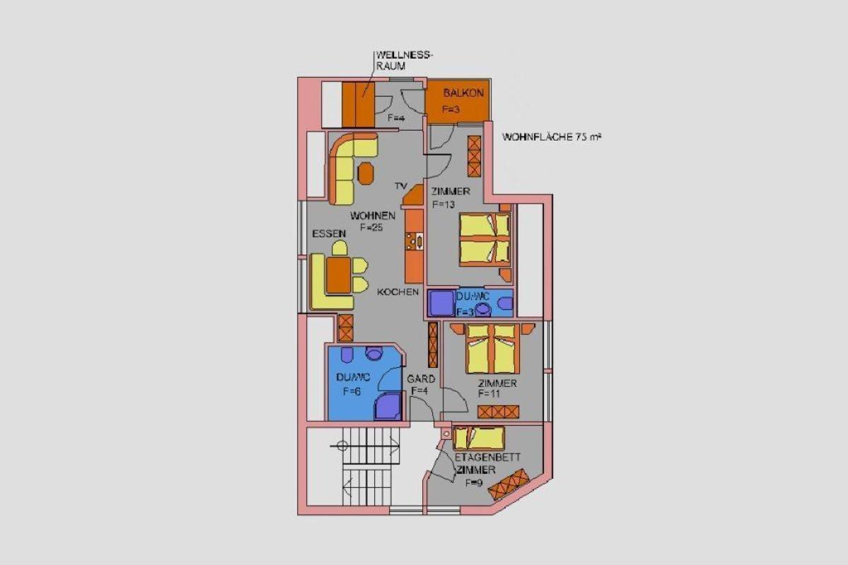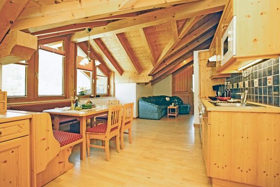 Das Appartement für 2 - 6 Personen befindet sich im Dachgeschoß und verfügt über 3 Schlafzimmer, einen Wohnraum, Küche mit großem Esstisch und Geschirrspüler, E-Herd, Backrohr, Kühlschrank, Mikrowelle, Kaffeemaschine und Wasserkocher, 3 Bäder, 2 WC, 2 Flatscreen-TV, CD-Player, W-LAN, eine Infrarotsauna und einen Balkon.