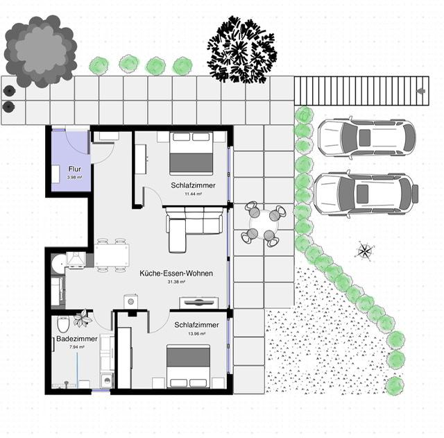 Zur Ferienwohnung gehören auch 2 Parkplätze.