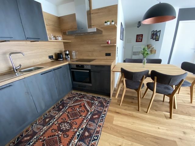 Die vollausgestattete Küche (Geschirrspüler, Kaffeemaschine, Backofen, Cerankochfeld usw.) vervollständigt die Voraussetzungen für ein gemütliches Ambiente im Apartment „Bergduft“.