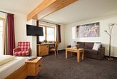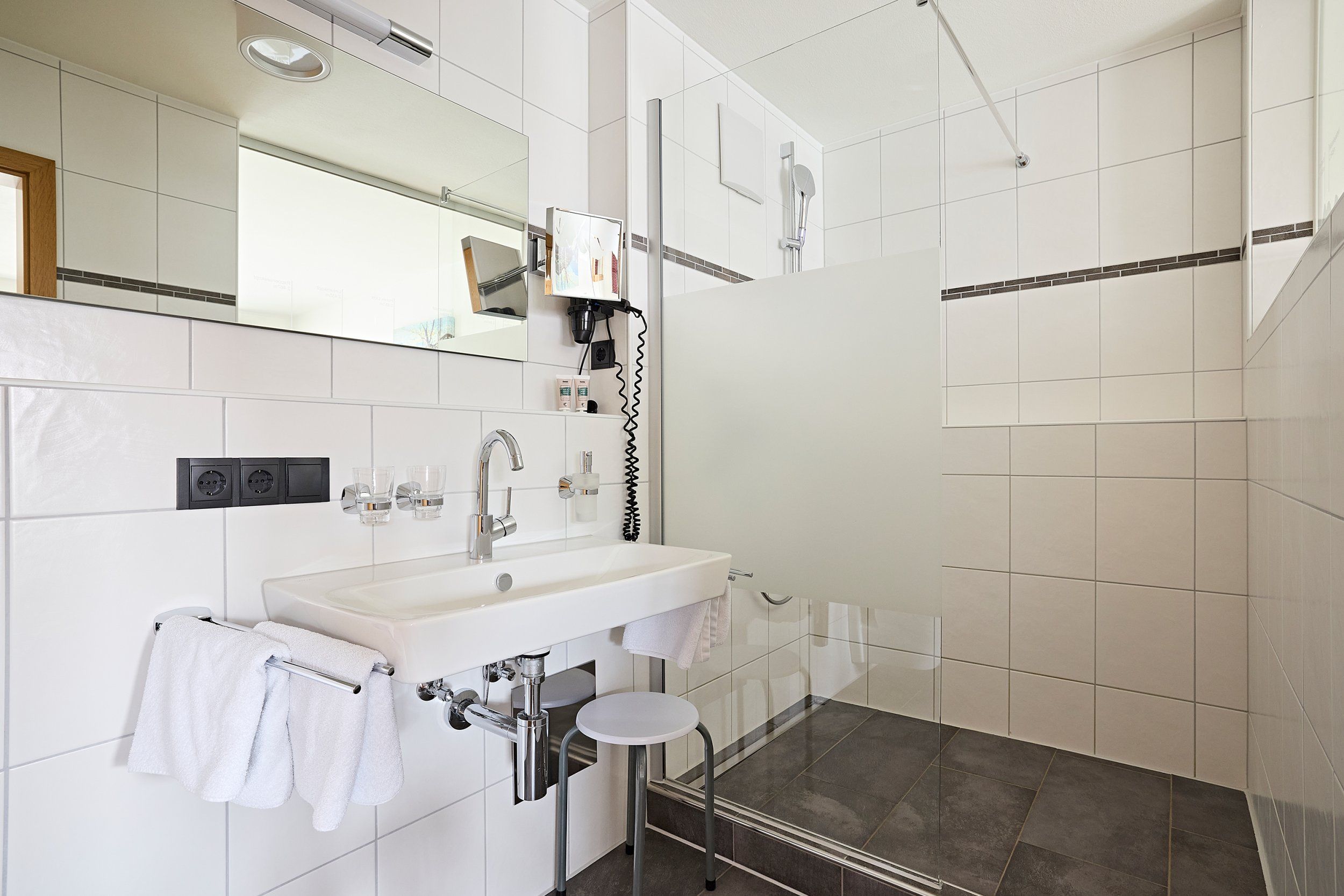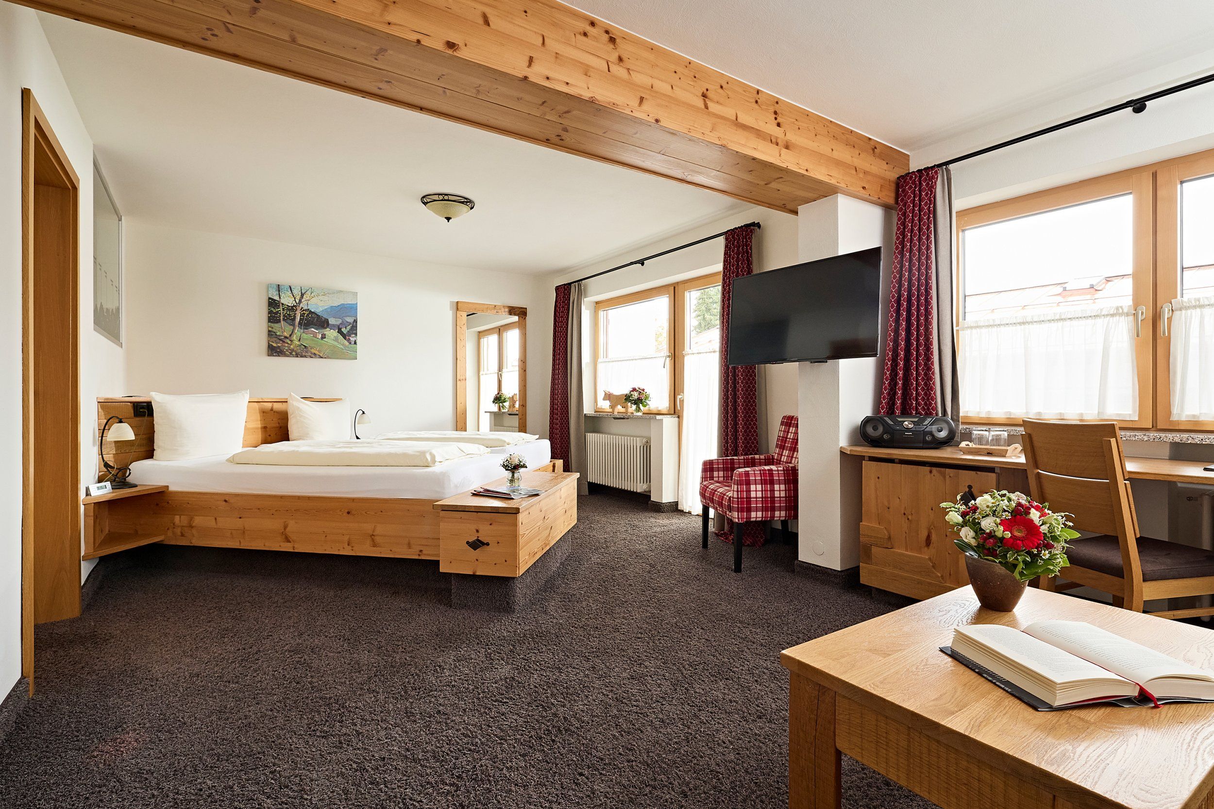 Das hochwertig gestaltete Doppelzimmer mit ca. 36 qm ist im 1. Stock, großer Balkon, Kabel - TV, Radio, CD - Player, Wecker, WLAN, geräumiges modernes Bad mit Du / WC mit Föhn und Kosmetikspiegel. Oberstdorfer Frühstück.