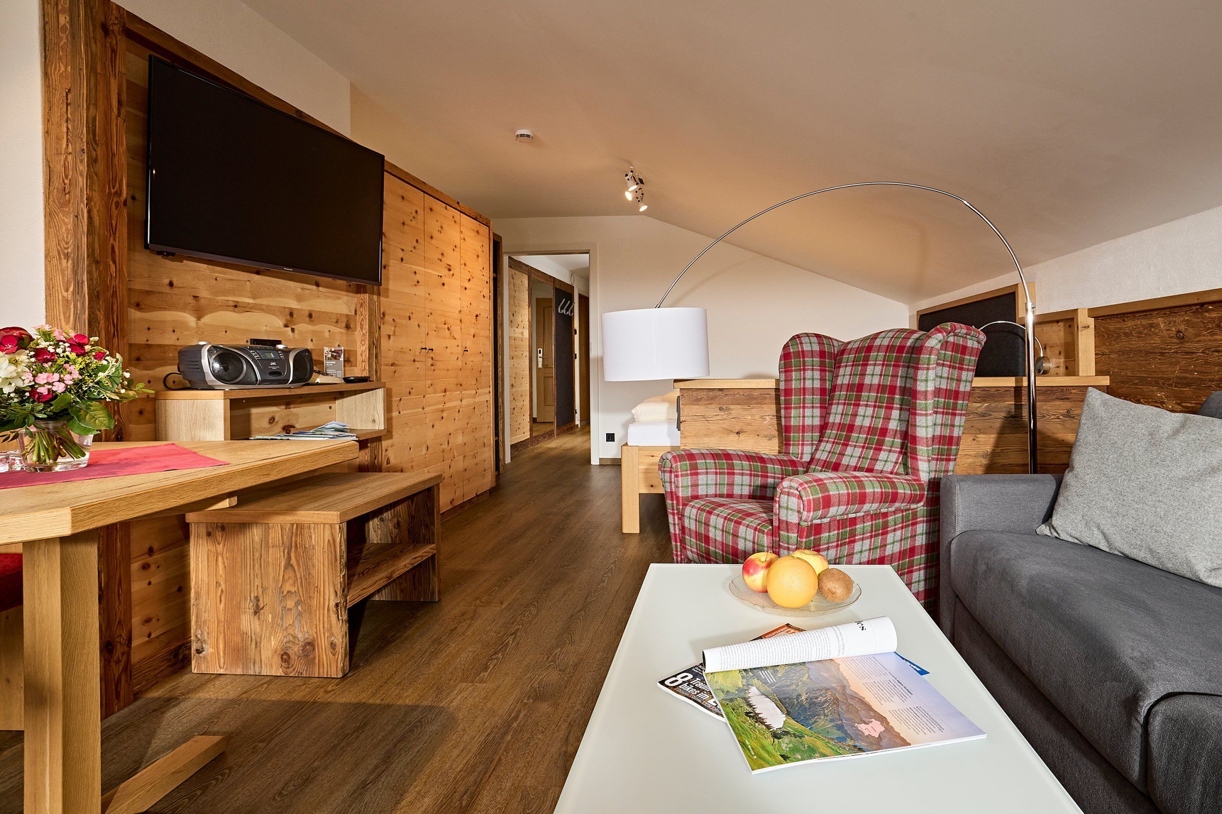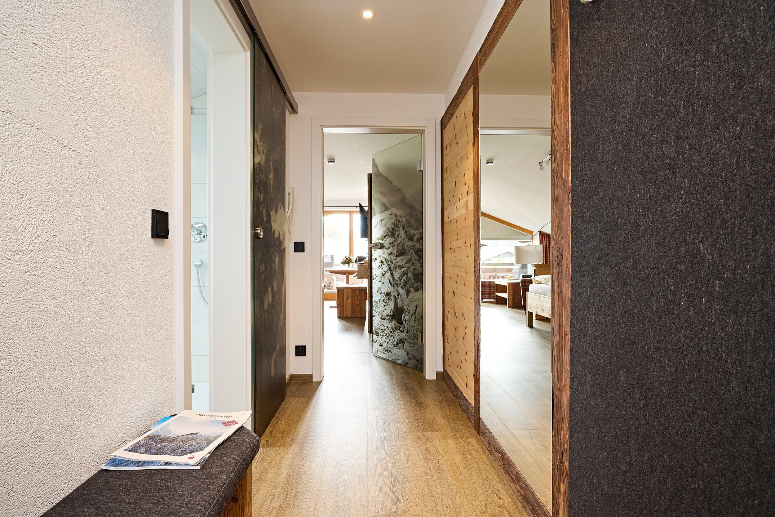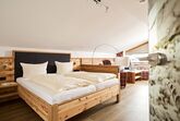 Unsere 1-Zimmer-Ferienwohnung im exklusiven und modernen alpinen Stil mit Zirbelkiefer, heimischem Altholz, edlem Tiroler Lodenstoff und hochwertigen Federkernmatratzen im Schlafbereich sorgen für max. Wohlfühlfaktor.