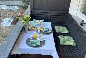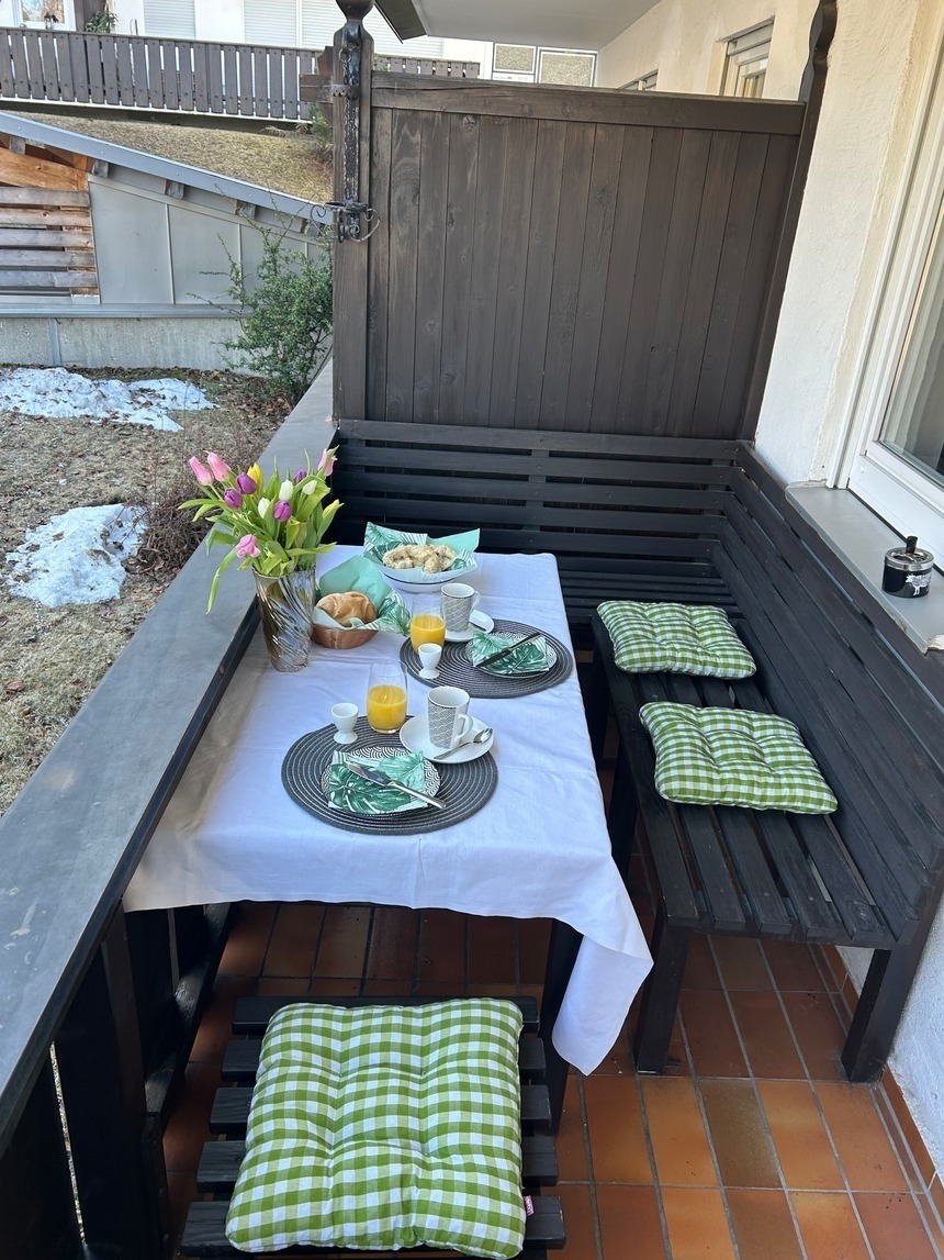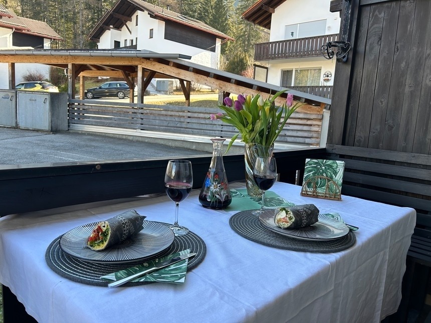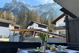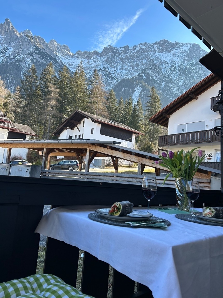 Ein besonderes Highlight ist der große Balkon – genießen Sie hier die frische Alpenluft und den beeindruckenden Bergblick auf das gigantische Karwendelmassiv beim Frühstück oder einem entspannten Abend.