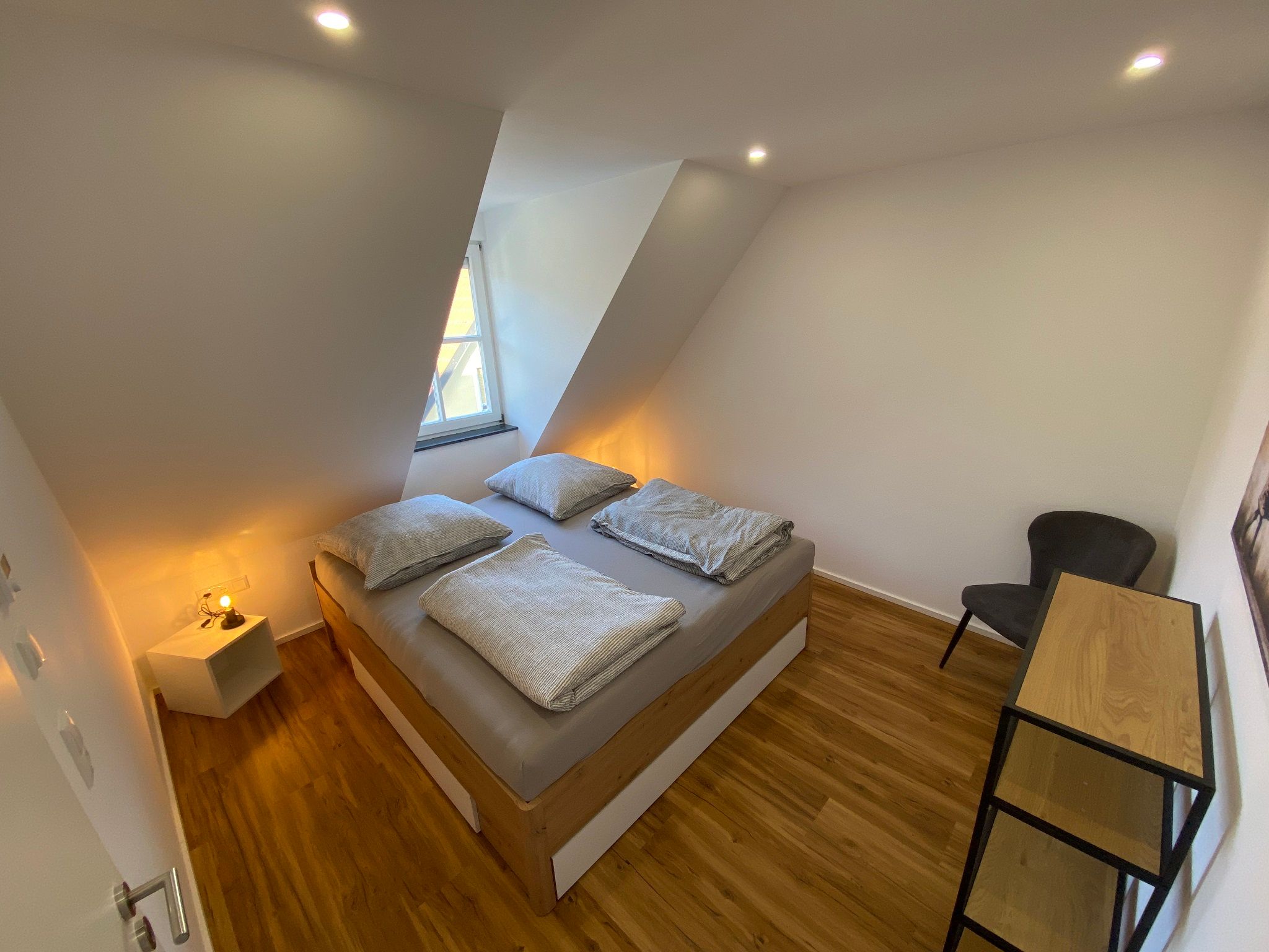 Ihr Ferienappartement befindet sich im 2. Obergeschoss unseres Hauses. Die helle und gut ausgestattete Wohnung hat 65 qm und ist für 2 bis maximal 4 Personen bestens geeignet. Sie verfügt über zwei getrennte, großzügige Schlafzimmer. Das eine ist mit einem Doppelbett (180x200cm) ausgestattet, das andere mit zwei komfortablen Einzelbetten(90x200cm). Der offene und großzügig geschnittene Wohnbereich lädt zum Verweilen ein. Integriert ist die ist die gut ausgestattete Küchenzeile. Sie enthält unteranderem einen Backofen mit zugehörigem Cerankochfeld, eine Kaffeemaschine, Wasserkocher, Toaster, Mikrowelle und ausreichend Geschirr. Angrenzend an den Wohnbereich liegt der große Balkon mit Blick über die Dächer Nordheims und auf die Weinlage Escherndorfer Lump. Dieser ist ausgestattet mit Gartenmöbel für das ein oder ander Glas fränkischen Weins im Freien. Das Bad mit Dusche und WC wird Ihren Ansprüchen mehr als entsprechen. Alle Fahrradurlauber finden in der Garage Platz für Ihre Bikes. Autos können sie auf den zahlreichen öffentlichen Parkplätzen rund um das Haus parken. Auch kostenfreies WLAN ist für Sie am Start.