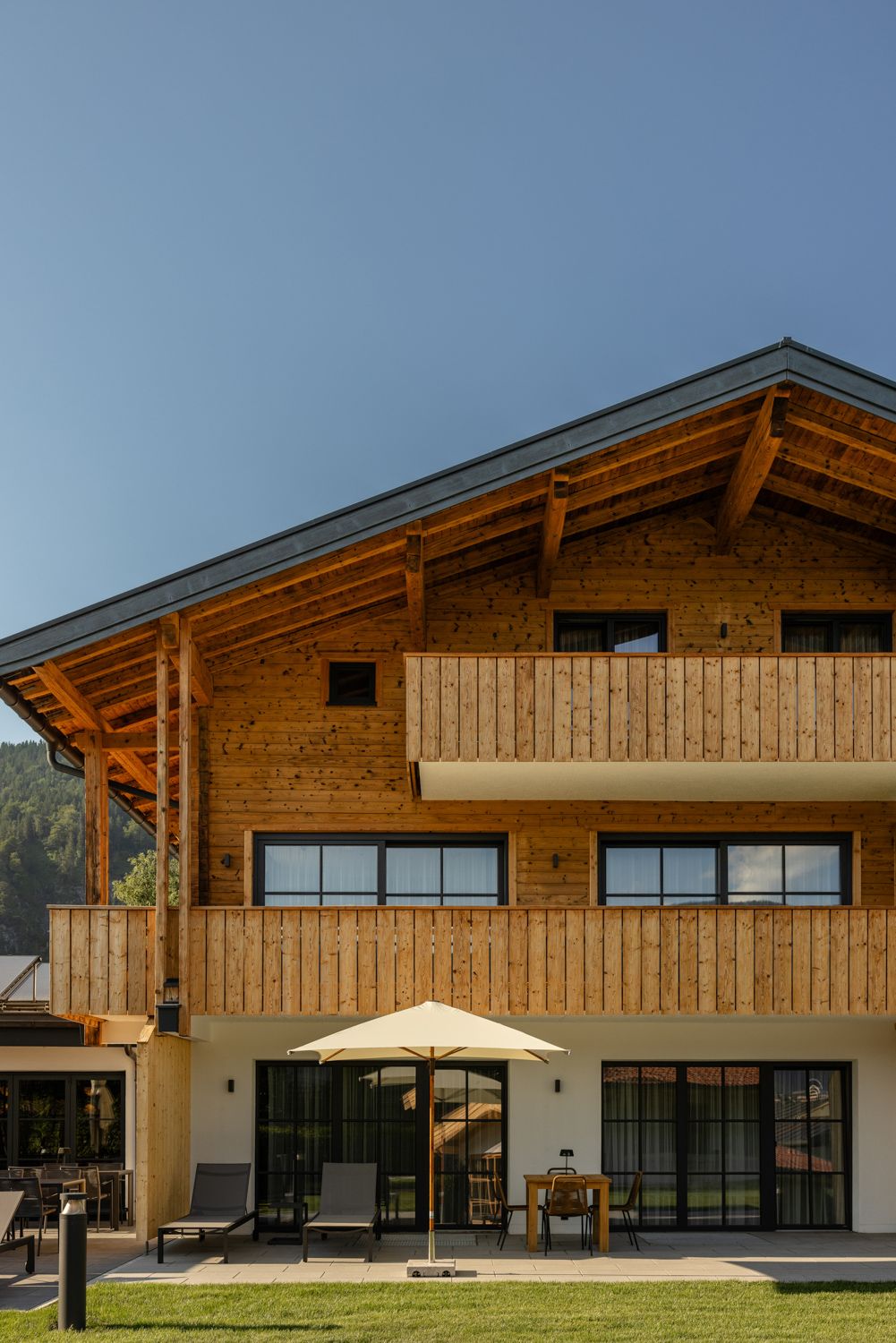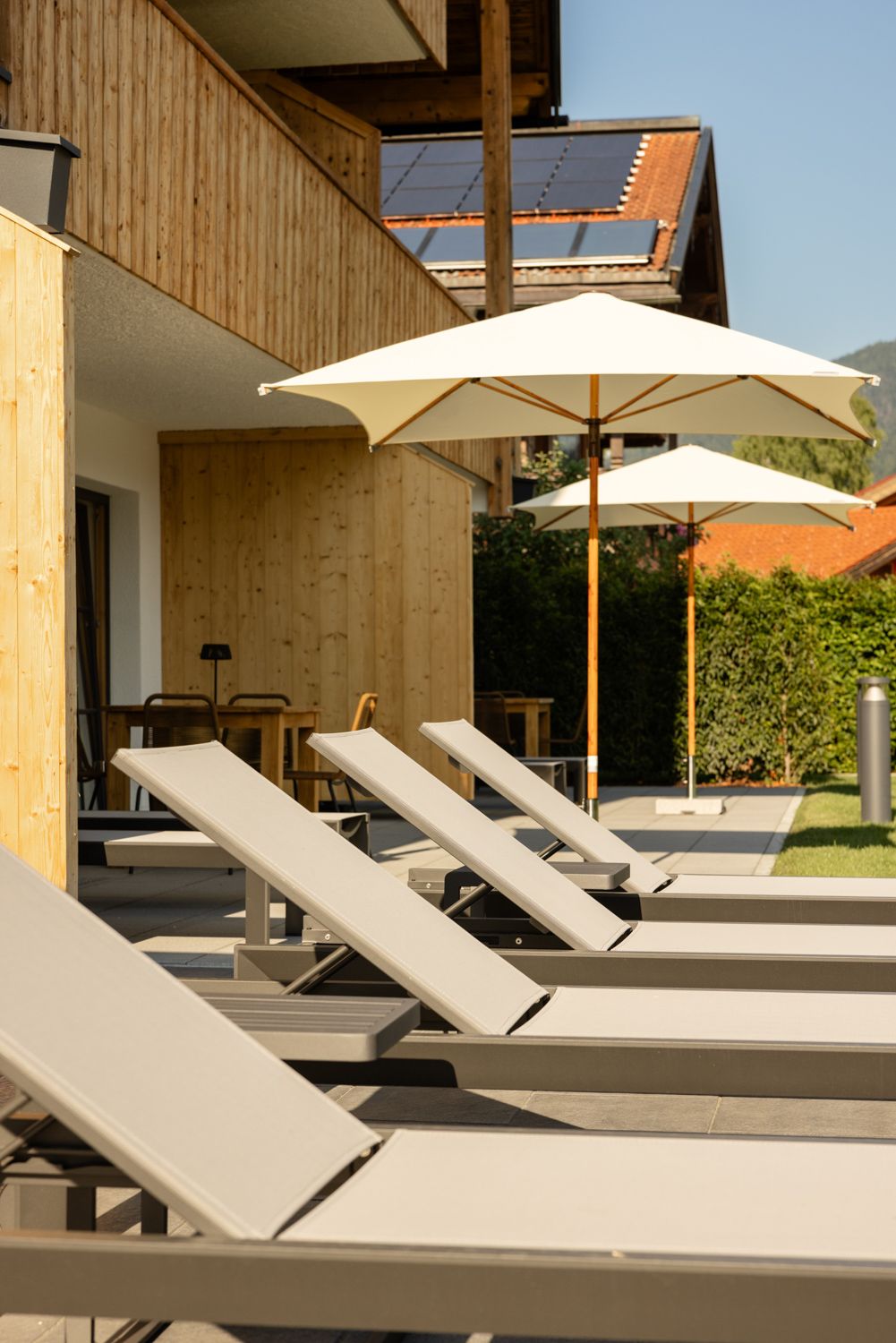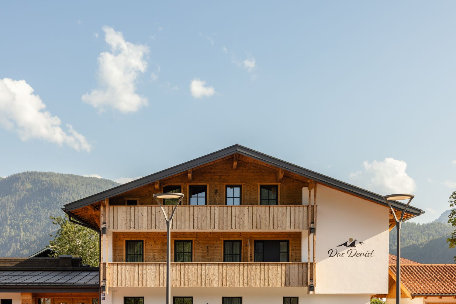 Für alle, die Ruhe mit Stil und Natur mit Komfort verbinden möchten: Sobald Sie Das Denisl betreten, stellt sich ein tiefes Gefühl der Erholung ein. Mitten im Herzen von Reit im Winkl, zentral an der Sonnenloipe, wartet ein neues Apartmenthaus mit 14 stilvollen, hellen Ferienwohnungen voller Flair auf Ihre unvergessliche Zeit im Chiemgau. Viel Altholz, gedeckte Farben, indirekte Beleuchtung, schwarze Armaturen und große Türen zu Balkon oder Terrasse machen Ihre Urlaubstage zu einem echten Design-Erlebnis. Freuen Sie sich auf bestens ausgestattete Küchen, einladende Essbereiche, gemütliche Ledersofas, große Waschtische, kuschelige Boxspringbetten und Regenduschen, die Sie rundum verwöhnen und entspannen lassen. Im Haus zählt der großzügige Aufenthalts- und Eventraum mit 120 m² zu einem beliebten Treffpunkt, um gemütlich zusammenzusitzen, gemeinsam zu feiern oder Tagungen durchzuführen – ausgestattet mit Küche, Theke, Tontechnik, Getränke-/Snackautomat und einer großen Sonnenterrasse mit Blick ins Grüne. Für Aktive Urlauber beginnen direkt vor der Tür idyllische Wanderwege, tolle Biketouren und gepflegte Skiloipen im Winter. Ihre Ausrüstung ist dabei bestens aufgehoben: im großen Skikeller mit Spinden und Skiwerkstatt sowie im Radlhäusl mit Fahrraddusche, Werkstatt und Spinden. Für entspannte Momente sorgt die charmante Sauna im Garten – Ihr Rückzugsort für Körper und Geist. Familien freuen sich über den Spielplatz und das Freibad ganz in der Nähe, aktive Urlauber schätzen schätzen die Haltestelle für den Wanderbus direkt hinter dem Haus. Kostenlose Parkplätze sind in ausreichender Anzahl im Hof vorhanden und wer elektrisch unterwegs ist, findet eine E-Ladestation bei der nahen Tourist-Info.