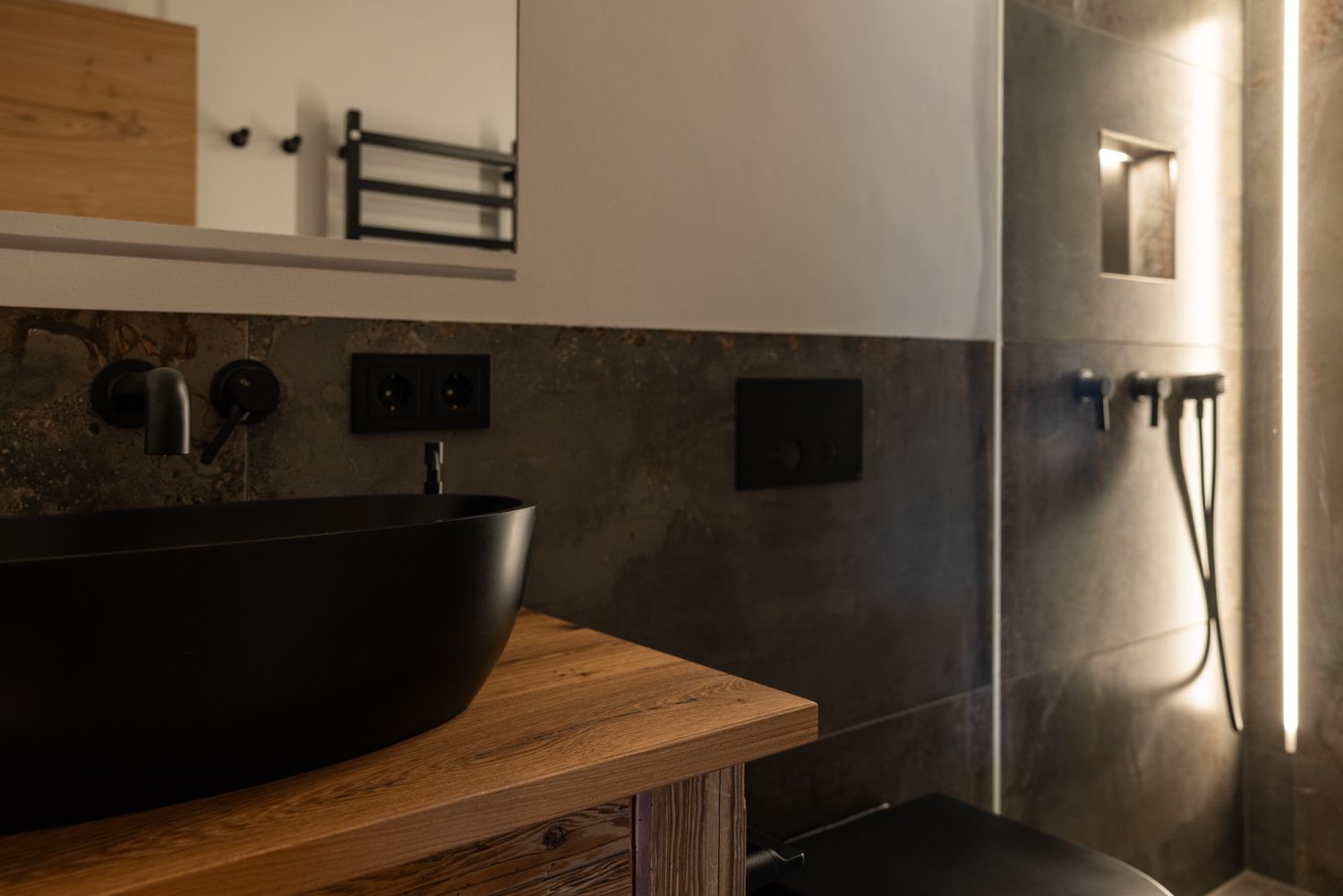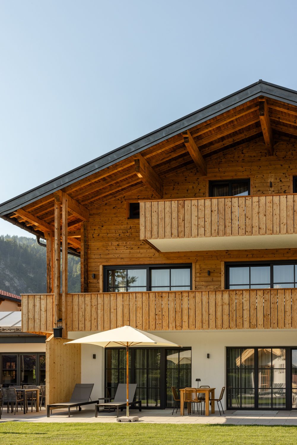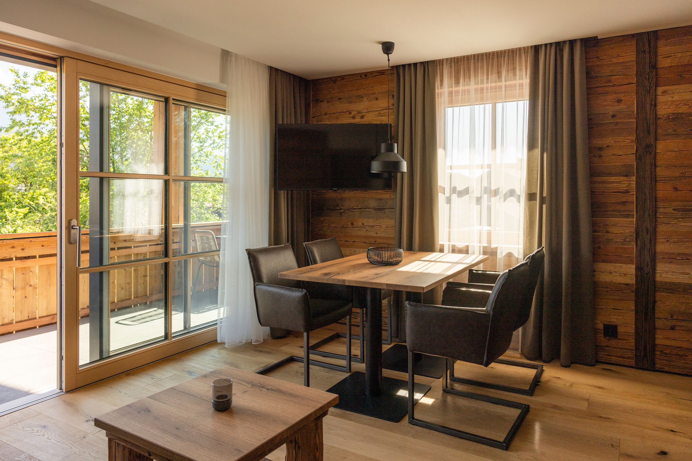 Für alle, die Ruhe mit Stil und Natur mit Komfort verbinden möchten: Sobald Sie Das Denisl betreten, stellt sich ein tiefes Gefühl der Erholung ein. Mitten im Herzen von Reit im Winkl, zentral an der Sonnenloipe, wartet ein neues Apartmenthaus mit 14 stilvollen, hellen Ferienwohnungen voller Flair auf Ihre unvergessliche Zeit im Chiemgau. Viel Altholz, gedeckte Farben, indirekte Beleuchtung, schwarze Armaturen und große Türen zu Balkon oder Terrasse machen Ihre Urlaubstage zu einem echten Design-Erlebnis. Freuen Sie sich auf bestens ausgestattete Küchen, einladende Essbereiche, gemütliche Ledersofas, große Waschtische, kuschelige Boxspringbetten und Regenduschen, die Sie rundum verwöhnen und entspannen lassen. Im Haus zählt der großzügige Aufenthalts- und Eventraum mit 120 m² zu einem beliebten Treffpunkt, um gemütlich zusammenzusitzen, gemeinsam zu feiern oder Tagungen durchzuführen – ausgestattet mit Küche, Theke, Tontechnik, Getränke-/Snackautomat und einer großen Sonnenterrasse mit Blick ins Grüne. Für Aktive Urlauber beginnen direkt vor der Tür idyllische Wanderwege, tolle Biketouren und gepflegte Skiloipen im Winter. Ihre Ausrüstung ist dabei bestens aufgehoben: im großen Skikeller mit Spinden und Skiwerkstatt sowie im Radlhäusl mit Fahrraddusche, Werkstatt und Spinden. Für entspannte Momente sorgt die charmante Sauna im Garten – Ihr Rückzugsort für Körper und Geist. Familien freuen sich über den Spielplatz und das Freibad ganz in der Nähe, aktive Urlauber schätzen schätzen die Haltestelle für den Wanderbus direkt hinter dem Haus. Kostenlose Parkplätze sind in ausreichender Anzahl im Hof vorhanden und wer elektrisch unterwegs ist, findet eine E-Ladestation bei der nahen Tourist-Info.