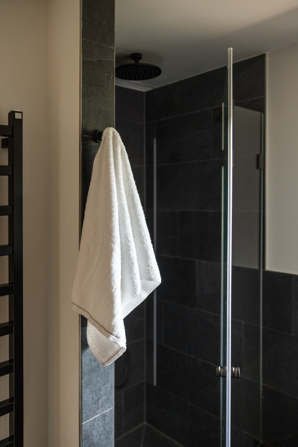 Separates Bad mit begehbarer Regendusche, Waschtisch und WC