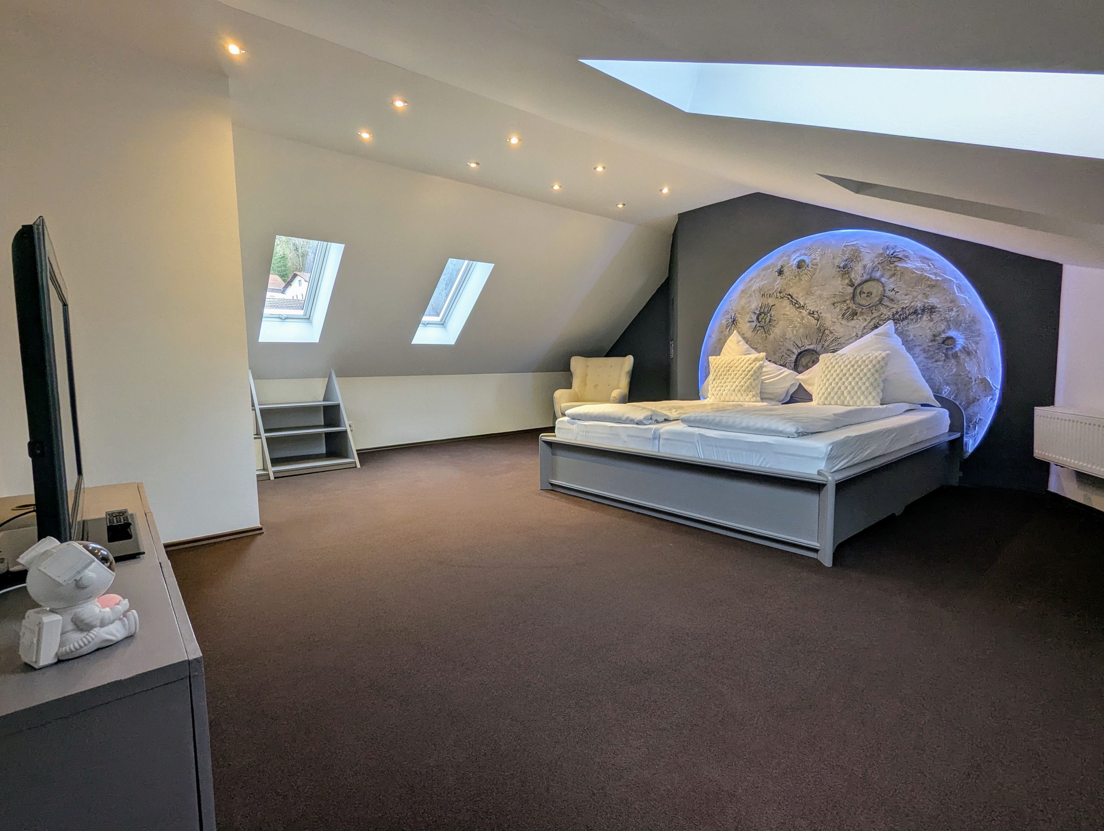 Buche jetzt die Himmel Suite und erlebe ein Apartment, das so einzigartig ist wie ein klarer Sternenhimmel über der Rhön!