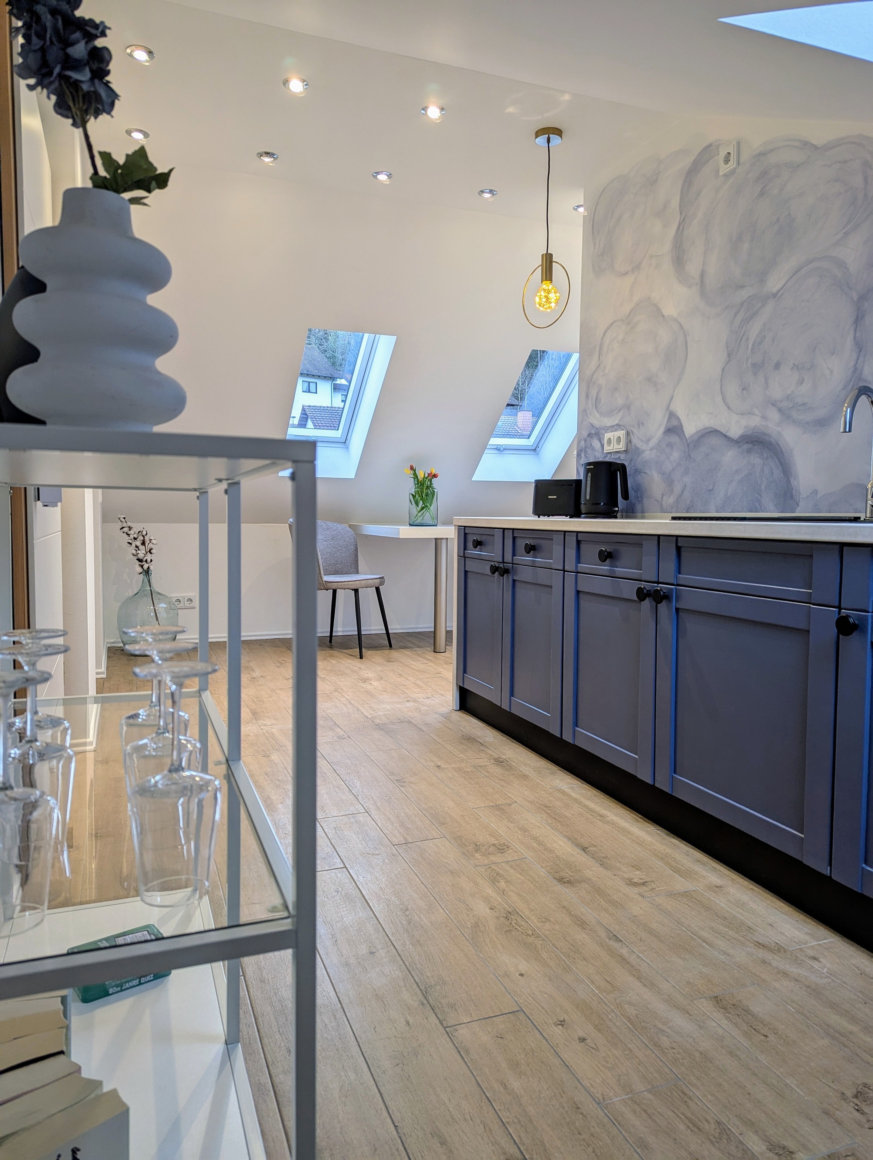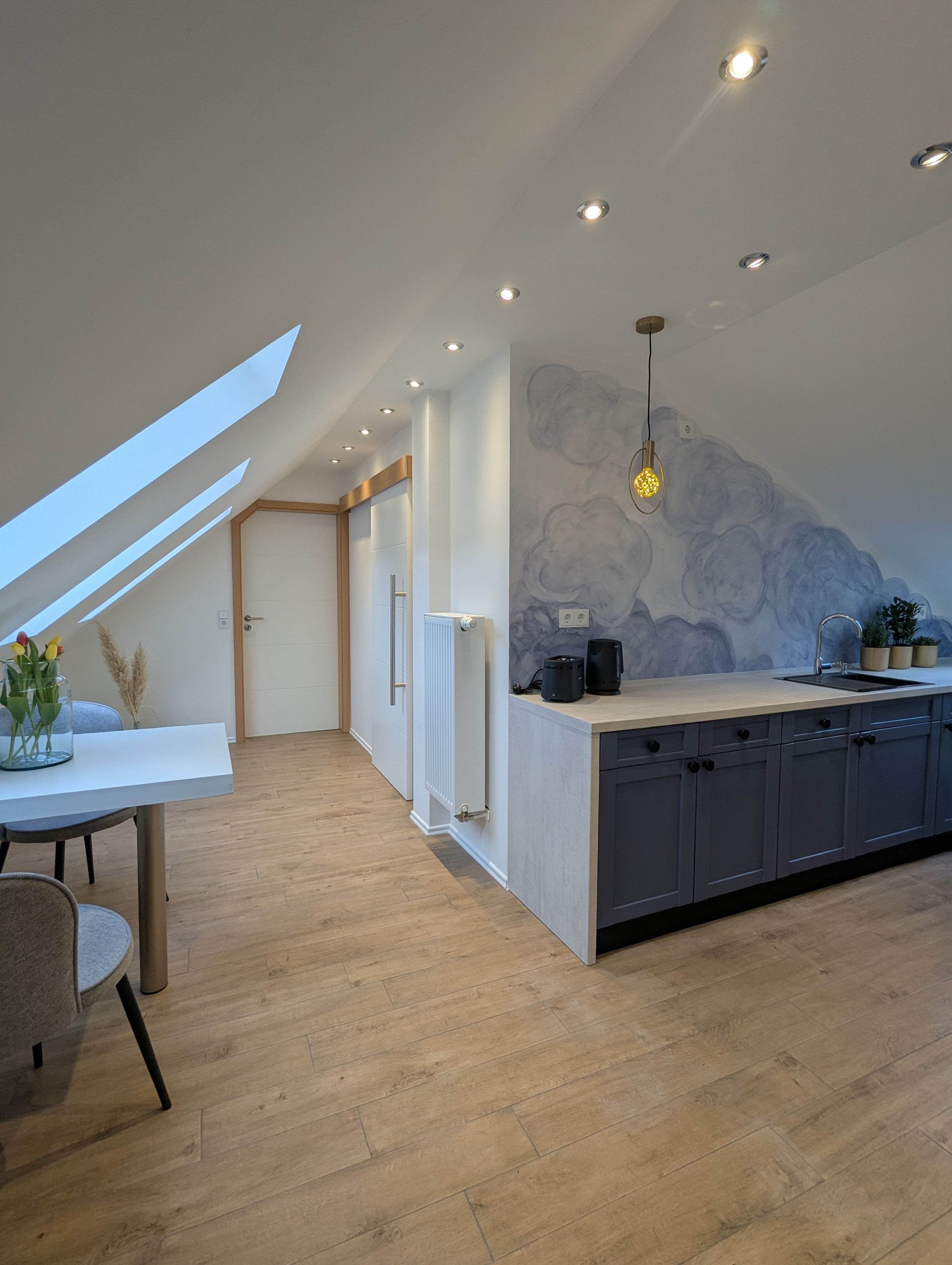 Die gut ausgestattete Küchenzeile bietet alles, was du brauchst: Herdplatten, Senseo-Kaffeemaschine, Toaster, Wasserkocher sowie Geschirr und Utensilien – perfekt, um entspannt Mahlzeiten zuzubereiten. Der gemütliche Essbereich bietet Platz für zwei bis drei Personen und lädt zu entspannten Frühstücken oder Abendessen ein.