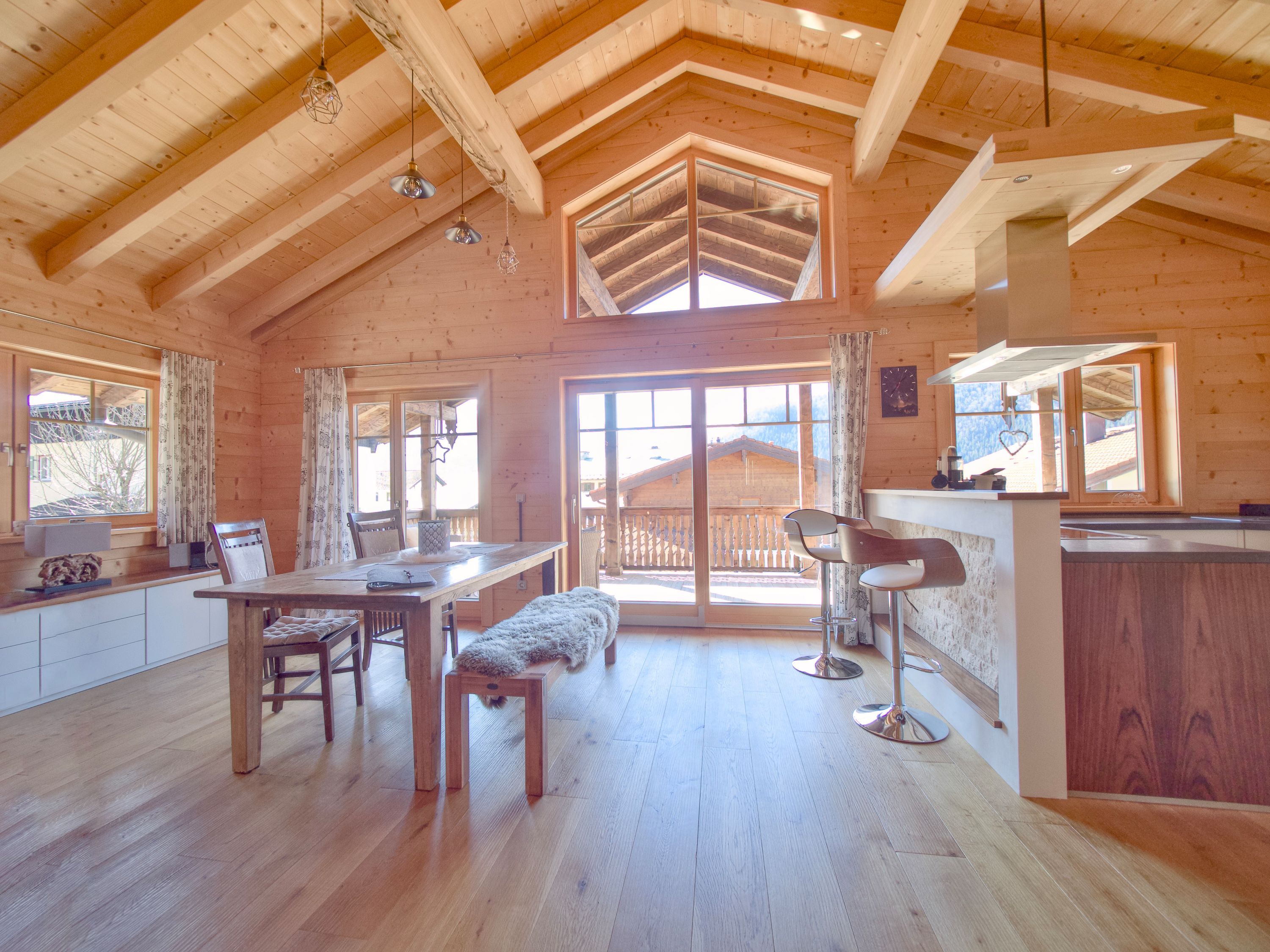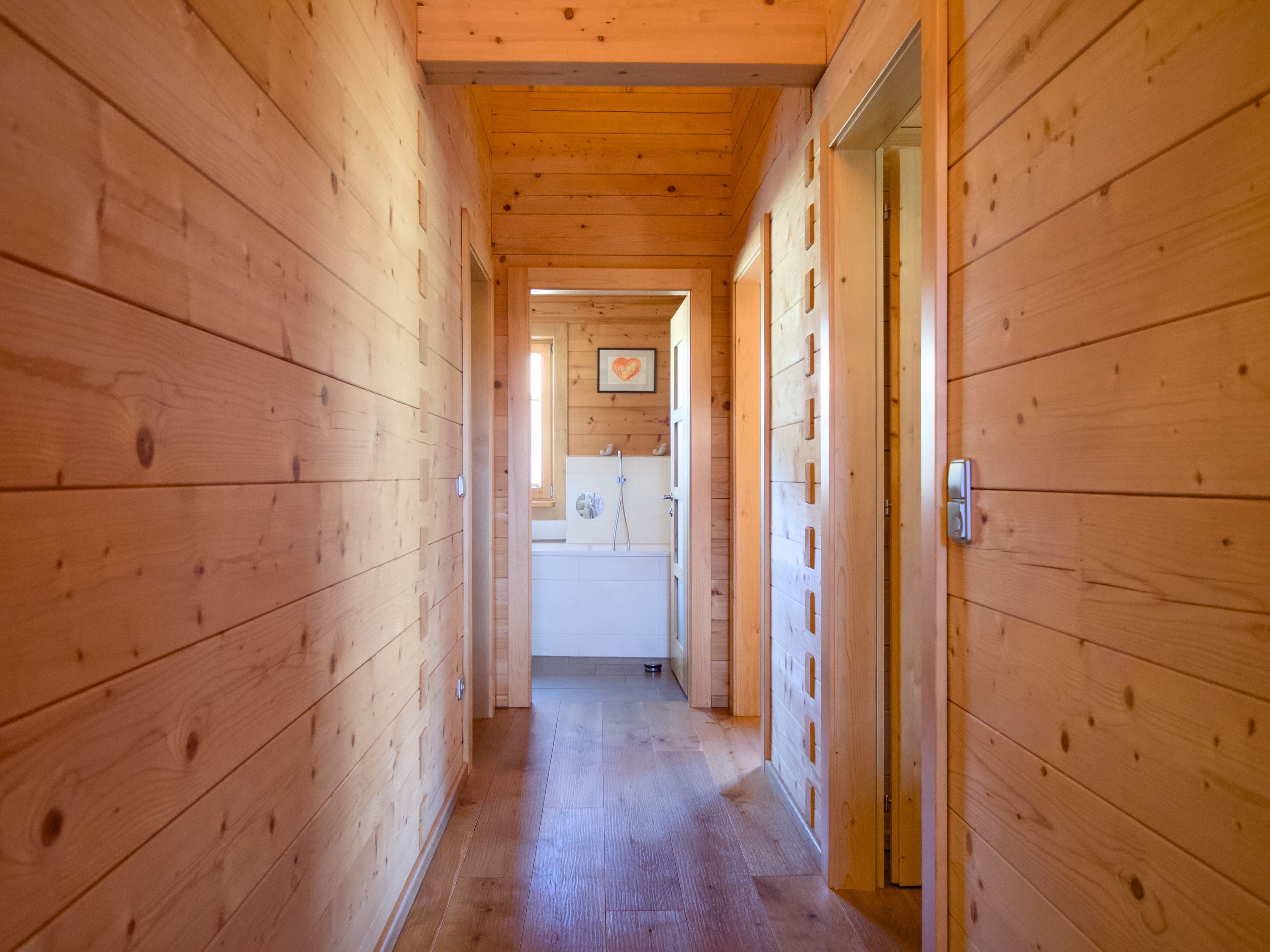 Auf 100 m² Wohnfläche erwartet Sie eine liebevoll eingerichtete Ferienwohnung, in der Naturmaterialien wie Holz eine zentrale Rolle spielen. Die Massivholzbauweise sorgt für ein behagliches Raumklima, das vom Duft des Zirbenholzes in den Schlafzimmern begleitet wird. Die warmen Holzwände und Holzböden verleihen jedem Raum eine besondere Gemütlichkeit.