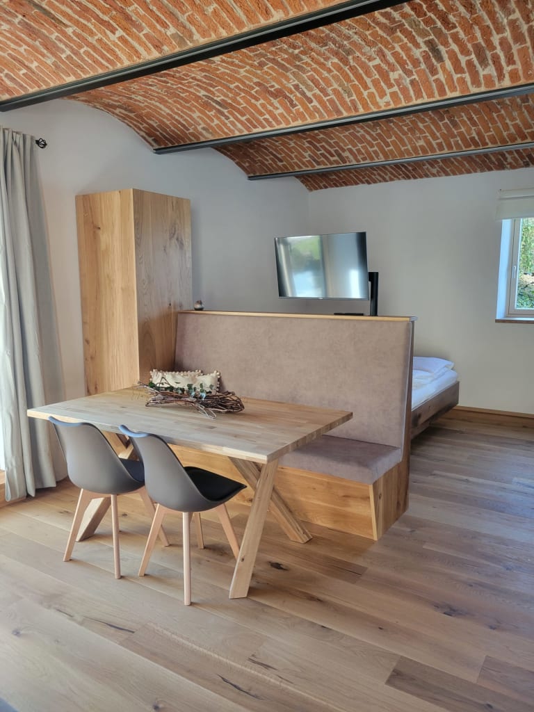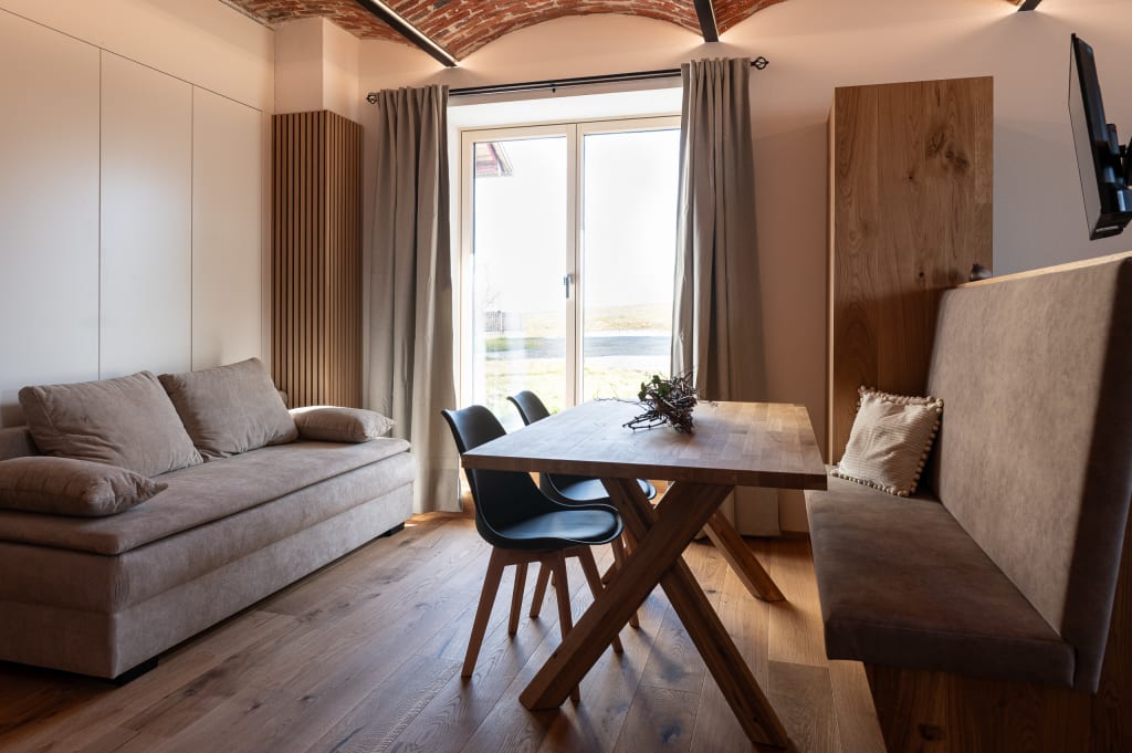 Unsere Unterkünfte, mit Liebe zum Detail renoviert und aus natürlichen Materialien gebaut, bieten Ihnen Komfort und sind ideal für Hausstauballergiker. Die erhaltenen Schienengewölbe aus dem Jahr 1899 verleihen den Apartments einen besonderen Charme.
