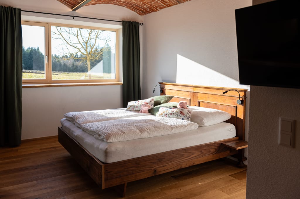 Unser kleines Holzriegelhaus oder unsere gemütlichen Apartments bieten Ihnen Ruhe und atemberaubende Ausblicke – entweder in die weite Ferne mit Bergpanorama oder auf den unvergesslichen Waldblick.
