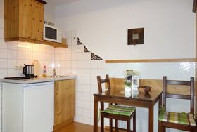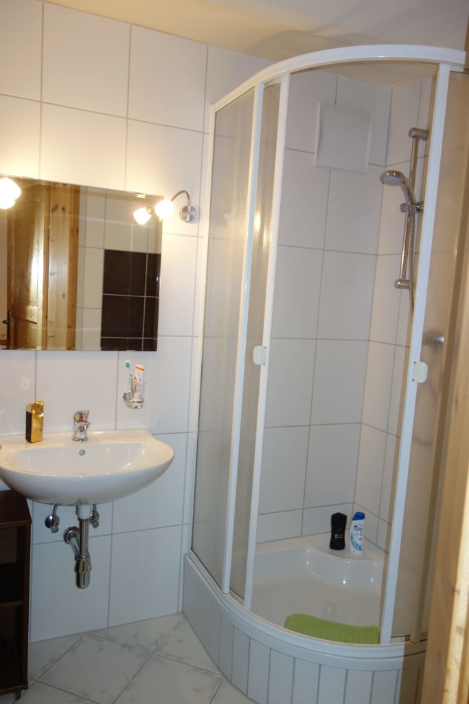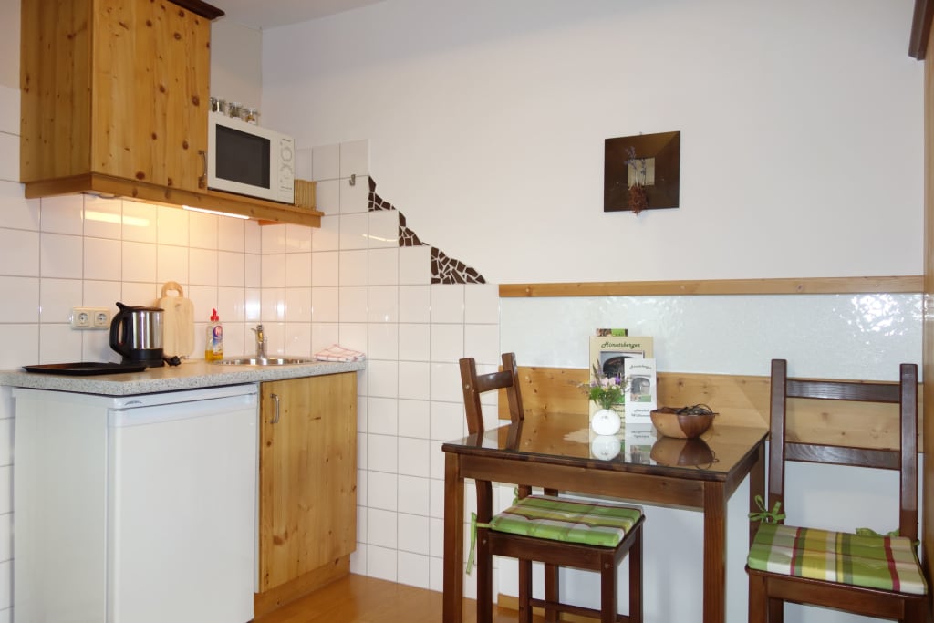 Das Troadbodenzimmer West ist der perfekte Rückzugsort für Kurzurlauber oder Durchreisende. Es bietet ausreichend Platz und ist mit einem komfortablen Bett, einer Couch sowie einem Bad ausgestattet. Eine kleine Kochnische mit Kühlschrank, Mikrowelle und Minibackofen ermöglicht es, sich selbst zu versorgen. Das Zimmer befindet sich im ersten Stock und bietet über den Balkon einen herrlichen Weitblick ins Grüne und auf das beeindruckende Gebirge. Ein idealer Ort für Erholung und Entspannung.