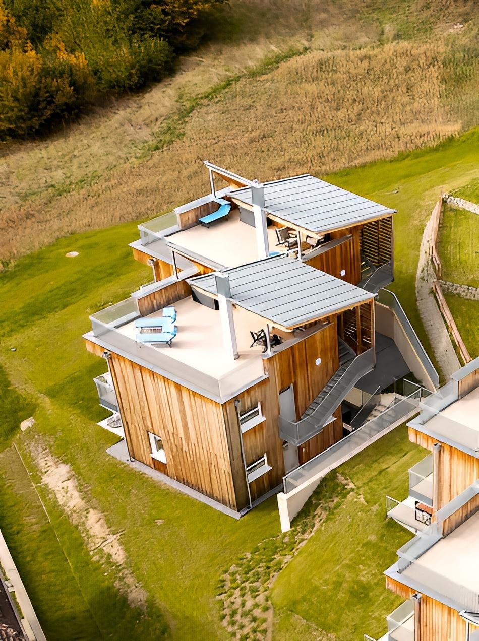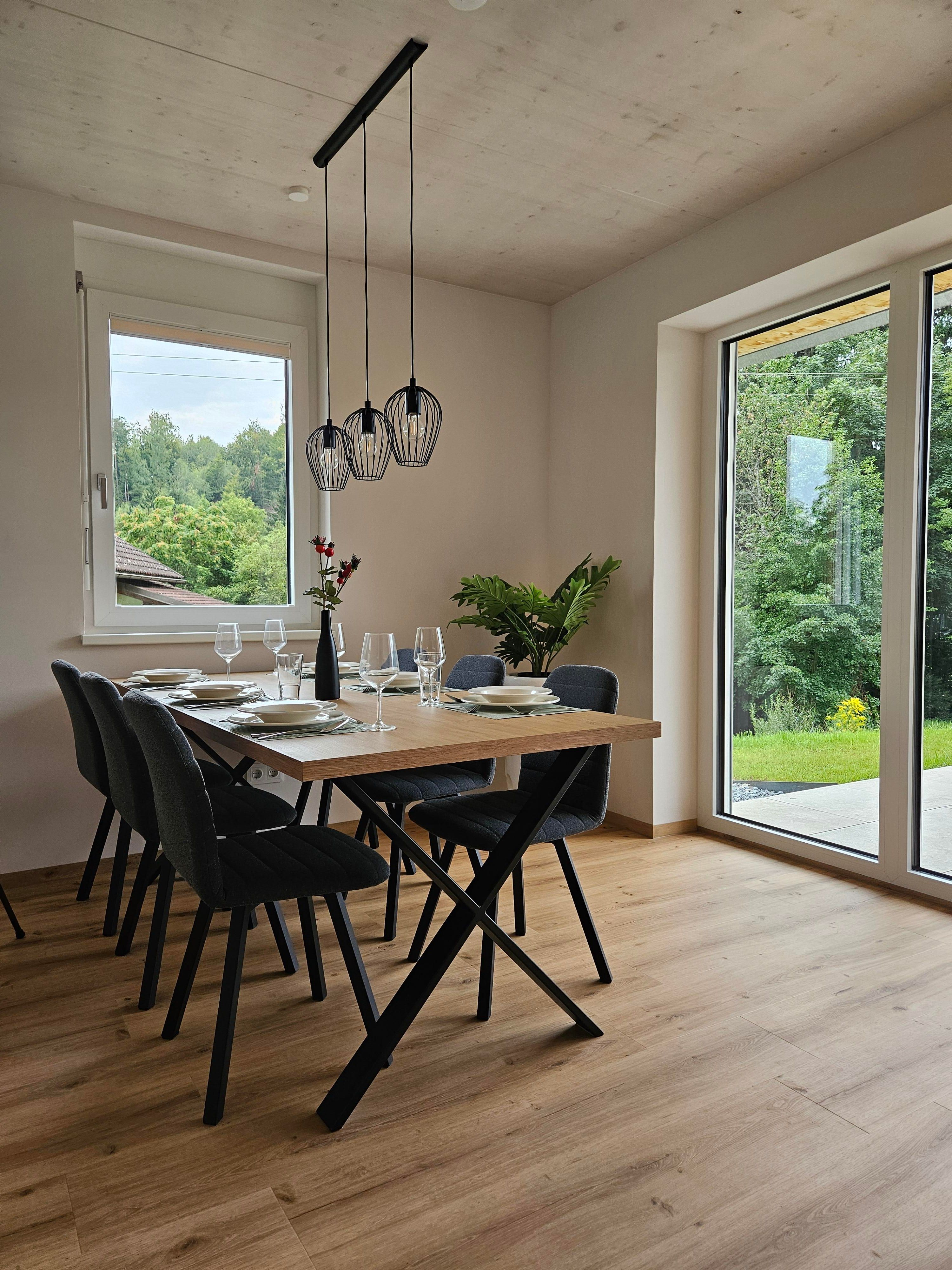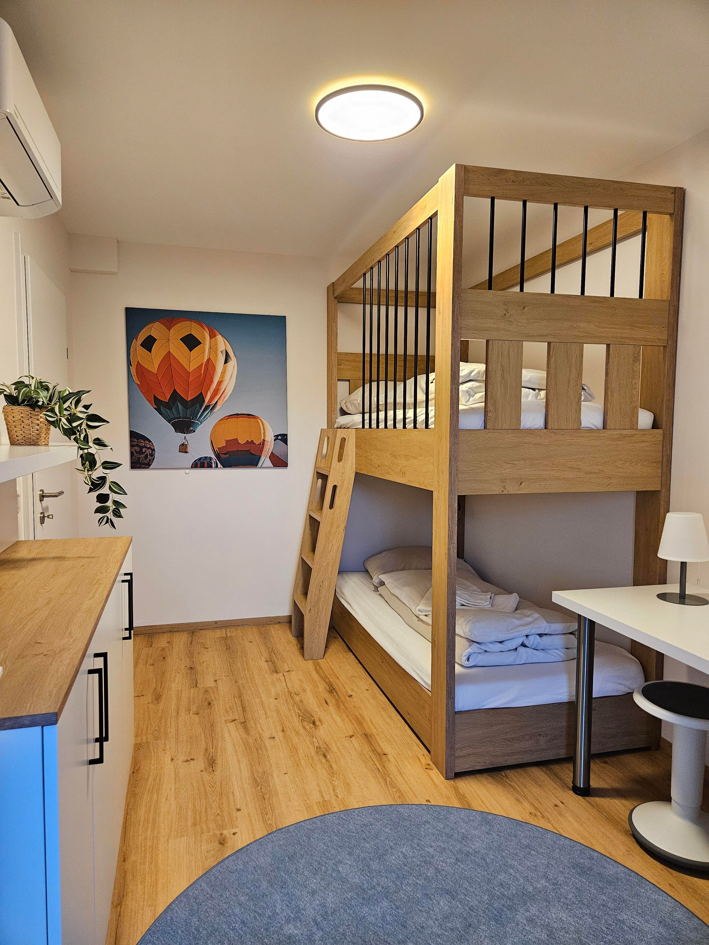 Gemütliche Holz-Lodges verbunden mit moderner, hochwertiger Ausstattung; ruhig mitten im Grünen und gleichzeitig seid ihr in wenigen Minuten direkt am Wörthersee. Auf 60m² Wohnfläche erwartet euch ein lichtdurchfluteter Wohn-Essbereich mit moderner, voll ausgestatteter Küche – ideal für gemeinsame Kochabende mit Familie oder Freunden. Die Küche lässt keine Wünsche offen. Zwei gemütliche Schlafzimmer – eines mit Doppelbett, das andere mit einem praktischen Hochbett – sowie eine bequeme Schlafcouch im Wohnzimmer bieten Platz für bis zu sechs Personen. An sonnigen Tagen genießt ihr eure Mahlzeiten auf eurer eigenen Terrasse mit kleinem Garten. Und wenn der Tag langsam ausklingt, wartet schon ein besonderes Highlight auf euch: die 50 qm große, private Dachterrasse mit gemütlichen Loungemöbeln. Hier seid ihr ungestört, vor Blicken geschützt – und der Sternenhimmel gehört ganz euch.