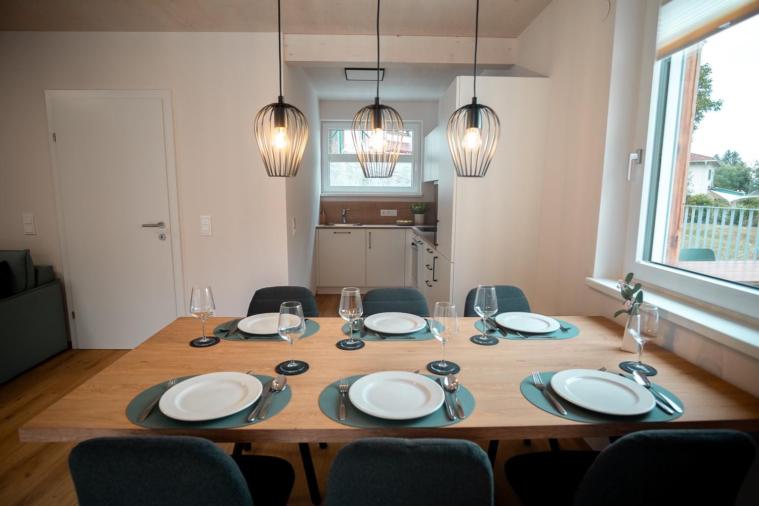Gemütliche Holz-Lodges verbunden mit moderner, hochwertiger Ausstattung; ruhig mitten im Grünen und gleichzeitig seid ihr in wenigen Minuten direkt am Wörthersee. Auf 60m² Wohnfläche erwartet euch ein lichtdurchfluteter Wohn-Essbereich mit moderner, voll ausgestatteter Küche – ideal für gemeinsame Kochabende mit Familie oder Freunden. Die Küche lässt keine Wünsche offen. Zwei gemütliche Schlafzimmer – eines mit Doppelbett, das andere mit einem praktischen Hochbett – sowie eine bequeme Schlafcouch im Wohnzimmer bieten Platz für bis zu sechs Personen. An sonnigen Tagen genießt ihr eure Mahlzeiten auf eurer eigenen Terrasse mit kleinem Garten. Und wenn der Tag langsam ausklingt, wartet schon ein besonderes Highlight auf euch: die 50 qm große, private Dachterrasse mit gemütlichen Loungemöbeln. Hier seid ihr ungestört, vor Blicken geschützt – und der Sternenhimmel gehört ganz euch.