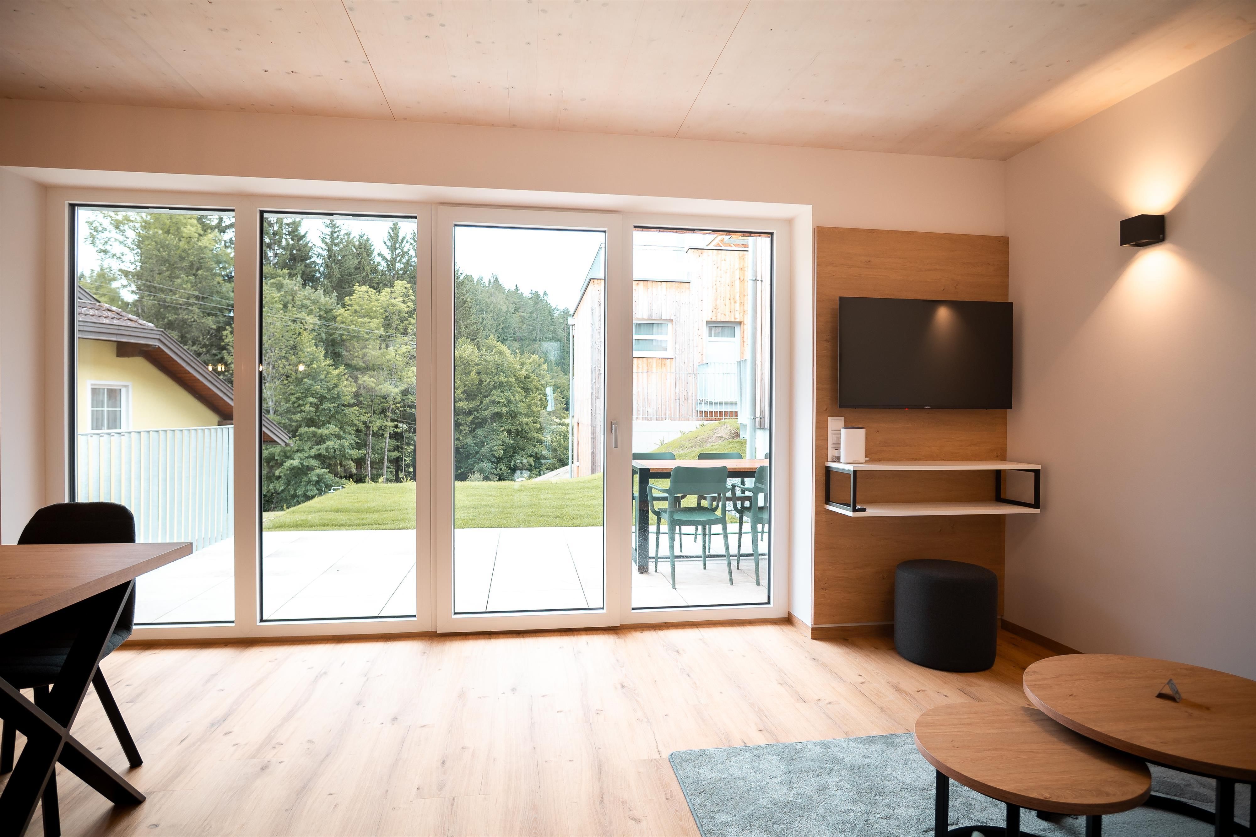Gemütliche Holz-Lodges verbunden mit moderner, hochwertiger Ausstattung; ruhig mitten im Grünen und gleichzeitig seid ihr in wenigen Minuten direkt am Wörthersee. Auf 60m² Wohnfläche erwartet euch ein lichtdurchfluteter Wohn-Essbereich mit moderner, voll ausgestatteter Küche – ideal für gemeinsame Kochabende mit Familie oder Freunden. Die Küche lässt keine Wünsche offen. Zwei gemütliche Schlafzimmer – eines mit Doppelbett, das andere mit einem praktischen Hochbett – sowie eine bequeme Schlafcouch im Wohnzimmer bieten Platz für bis zu sechs Personen. An sonnigen Tagen genießt ihr eure Mahlzeiten auf eurer eigenen Terrasse mit kleinem Garten. Und wenn der Tag langsam ausklingt, wartet schon ein besonderes Highlight auf euch: die 50 qm große, private Dachterrasse mit gemütlichen Loungemöbeln. Hier seid ihr ungestört, vor Blicken geschützt – und der Sternenhimmel gehört ganz euch.