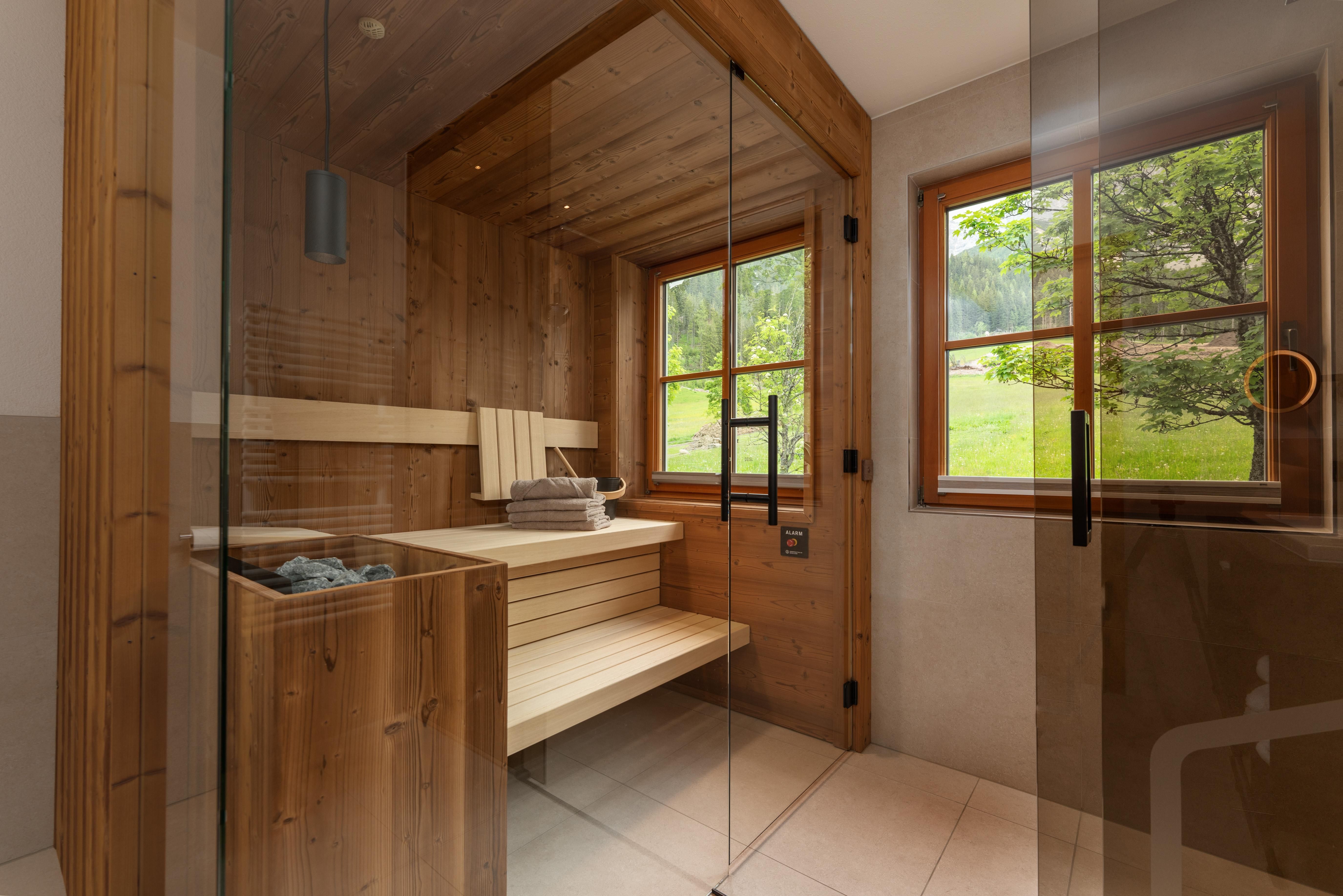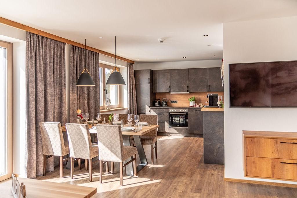 Das Appartement ist ausgestattet mit 2 Schlafzimmer, 1 Wohnzimmer mit Kachelofen, TV, Geschirrspüler mit Küche, Mikrowelle, E-Herd, Kühlschrank, 2 Bad/Dusche, 2 WC, Vorraum, Balkon und eigener privater Sauna