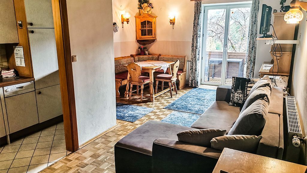Unsere Ferienwohnung wurde 2020 neu renoviert und ist im Landhausstil mit Parkettboden eingerichtet. Die Wohnung ist perfekt für 2 Personen, ein zusätzliche Schlafcouch ist vorhanden. Genießen Sie gemütliche Stunden auf dem großen Balkon.