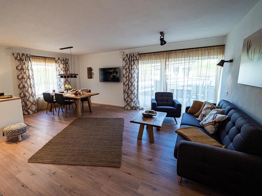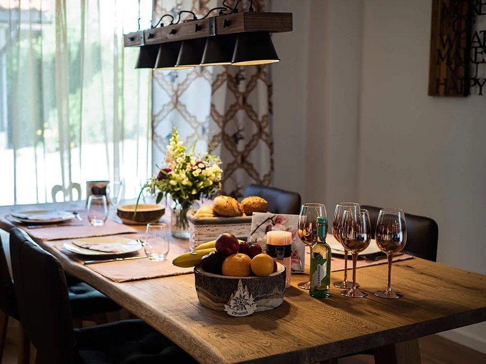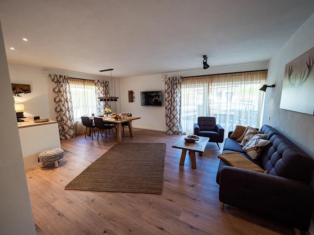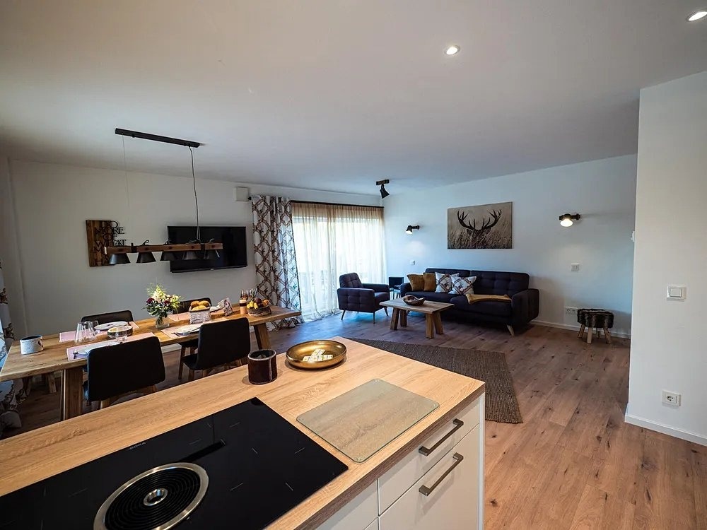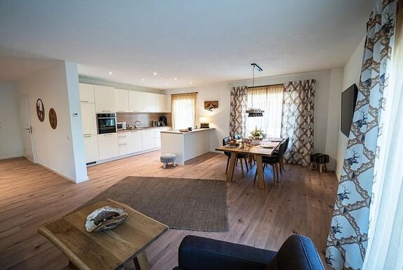 Dreizimmerwohnung im Erdgeschoss mit zwei Schlafzimmern, ein Schlafzimmer mit Zirbenholzbetten, ein Schlafzimmer mit einem Boxspringbett bzw. zwei einzelne Boxspringbetten für Kinder oder Erwachsene. Die Königscard ist für alle Gäste im Preis enthalten. Mit ihr können Sie 200 attraktive, kostenlose Angebote in der Region nutzen.
