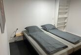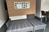 Schlafen: Der durch einen großzügigen Kleiderschrank mit Spiegel abgetrennte Wohn- und Schlafbereich bietet ein festes Doppelbett. Das Sofa im Wohnbereich kann bei Bedarf zu einer Schlafcouch ausgezogen werden, sodass noch einmal bis zu 2 Schlafplätze entstehen.