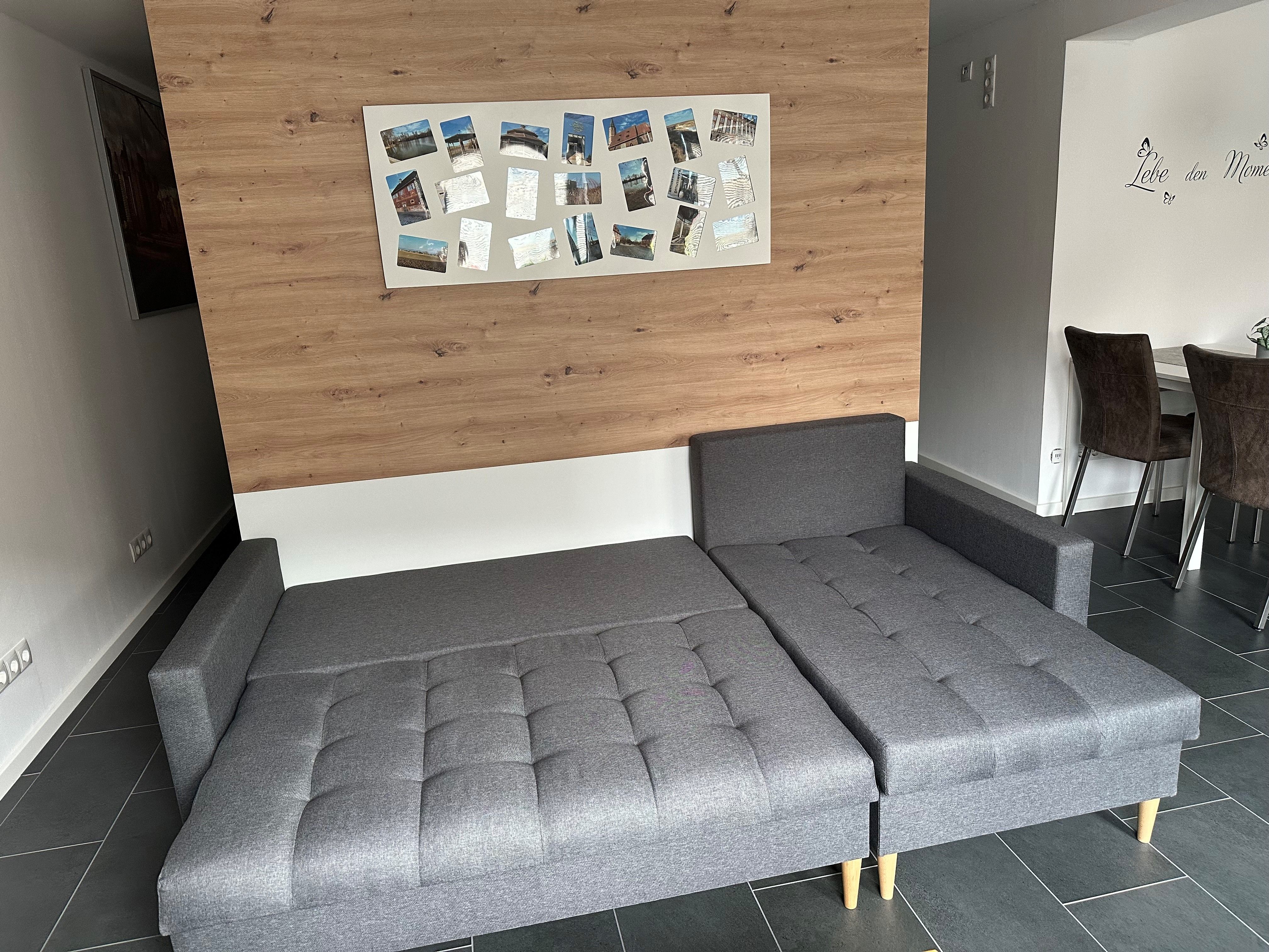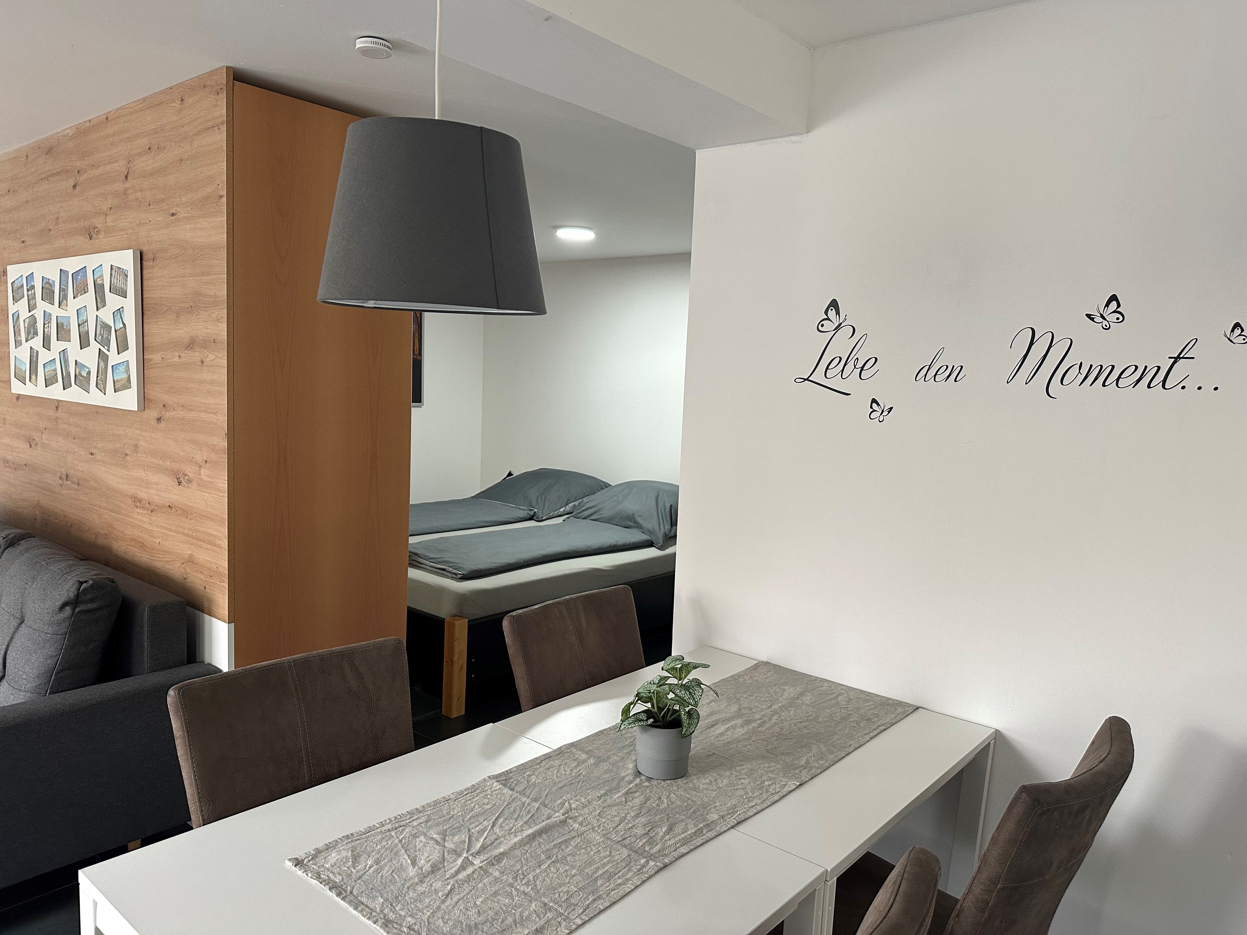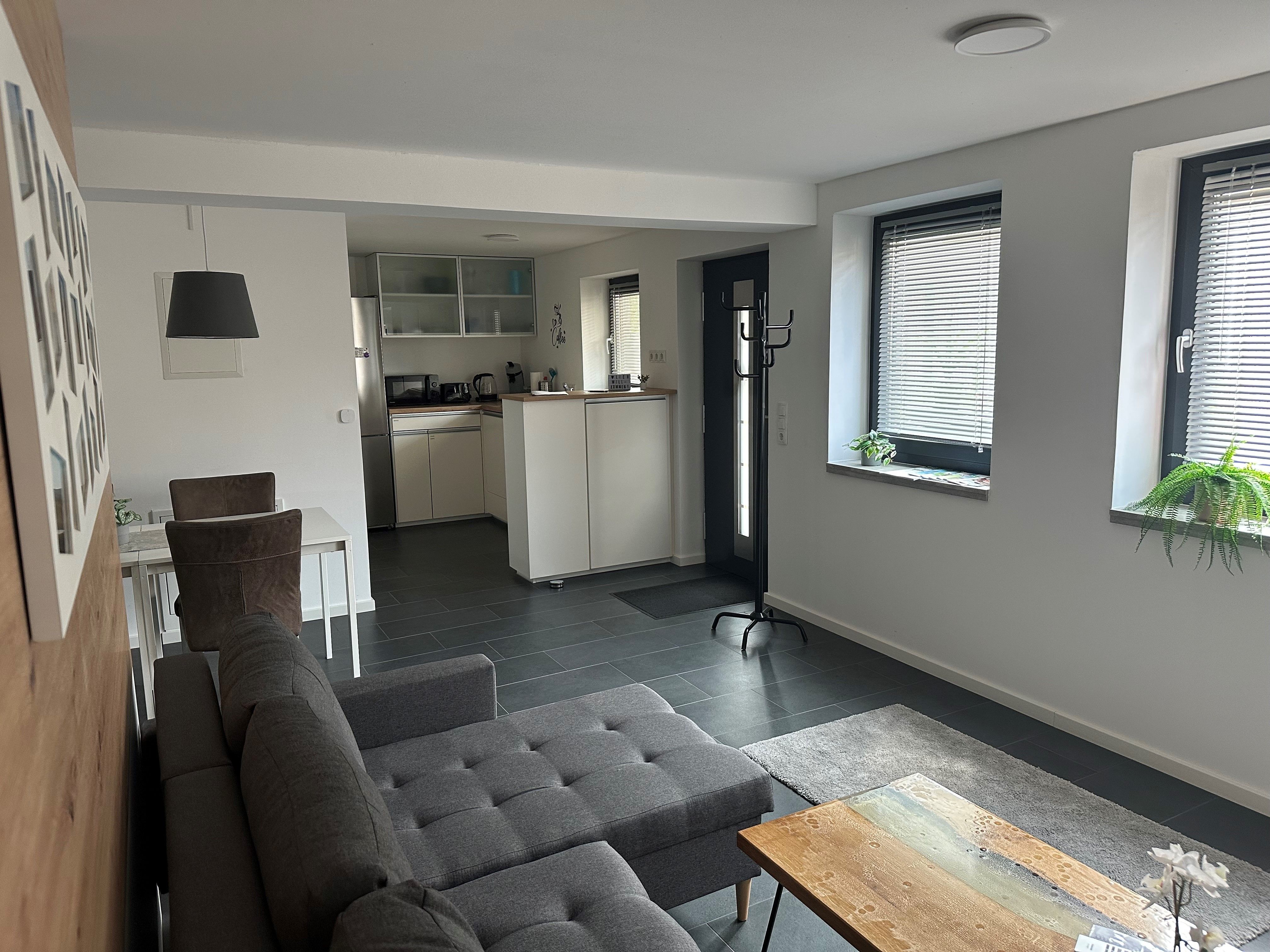 Die im Februar 2025 fertiggestellte Ferienwohnung ist mit allen Annehmlichkeiten ausgestattet. Es erwartet Sie eine moderne, praktisch und zugleich liebevoll eingerichtete Wohnung für eine bis max. vier Personen (Doppelbett, ab der 3. Person ist eine Schlafcouch vorhanden) mit einer Wohnfläche von 45 qm. Kostenloses W-LAN und 55 Zoll Flatscreen/SAT-TV im Wohnbereich bieten Ihnen den gewohnten Komfort.