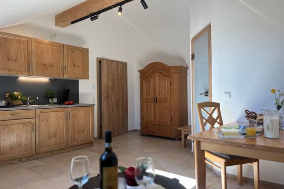 Unser Hof setzt auf eine eigene Hackschnitzelanlage, die mit Holz aus unseren eigenen Beständen beheizt wird eine nachhaltige Lösung, die Umweltbewusstsein und Komfort vereint. Auch die Einrichtung unserer großzügigen Ferienwohnungen folgt diesem Prinzip: Möbel aus hofeigenem Fichten-, Eschen-, Eichen- und Buchenholz sorgen für ein warmes und natürliches Wohngefühl. Jede Wohnung ist liebevoll dekoriert und bietet eine behagliche Atmosphäre zum Wohlfühlen.