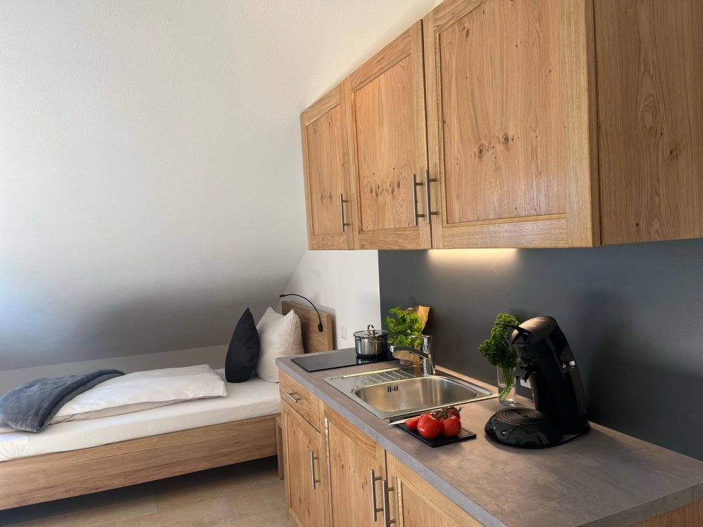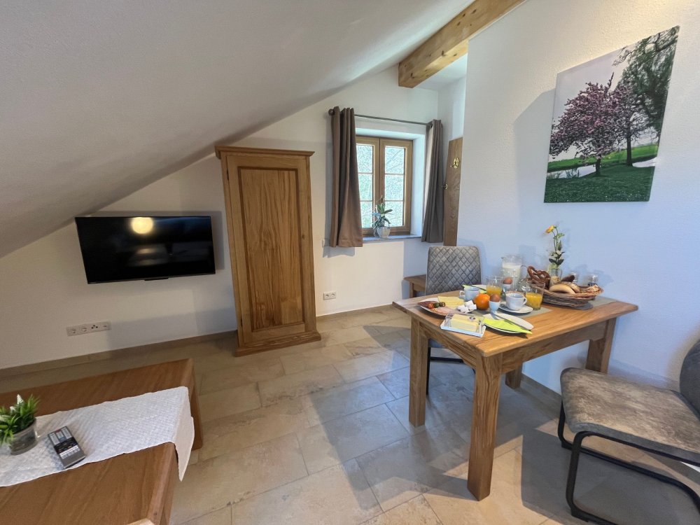 Genießen Sie eine erholsame Auszeit in unserem Einzelzimmer mit Küche, das mit einem weiten Blick über die umliegenden Felder und Wiesen verzaubert. Bei klarer Sicht können Sie sogar die beeindruckende Alpenkette in der Ferne erblicken. Ideal für Alleinreisende oder Geschäftsreisende, die Ruhe, Komfort und ein bisschen Natur suchen.