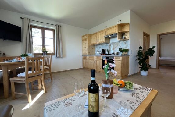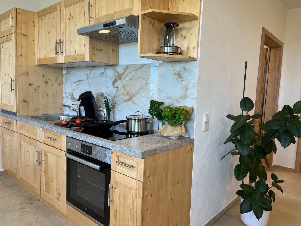 Unser Hof setzt auf eine eigene Hackschnitzelanlage, die mit Holz aus unseren eigenen Beständen beheizt wird eine nachhaltige Lösung, die Umweltbewusstsein und Komfort vereint. Auch die Einrichtung unserer großzügigen Ferienwohnungen folgt diesem Prinzip: Möbel aus hofeigenem Fichten-, Eschen-, Eichen- und Buchenholz sorgen für ein warmes und natürliches Wohngefühl. Jede Wohnung ist liebevoll dekoriert und bietet eine behagliche Atmosphäre zum Wohlfühlen.