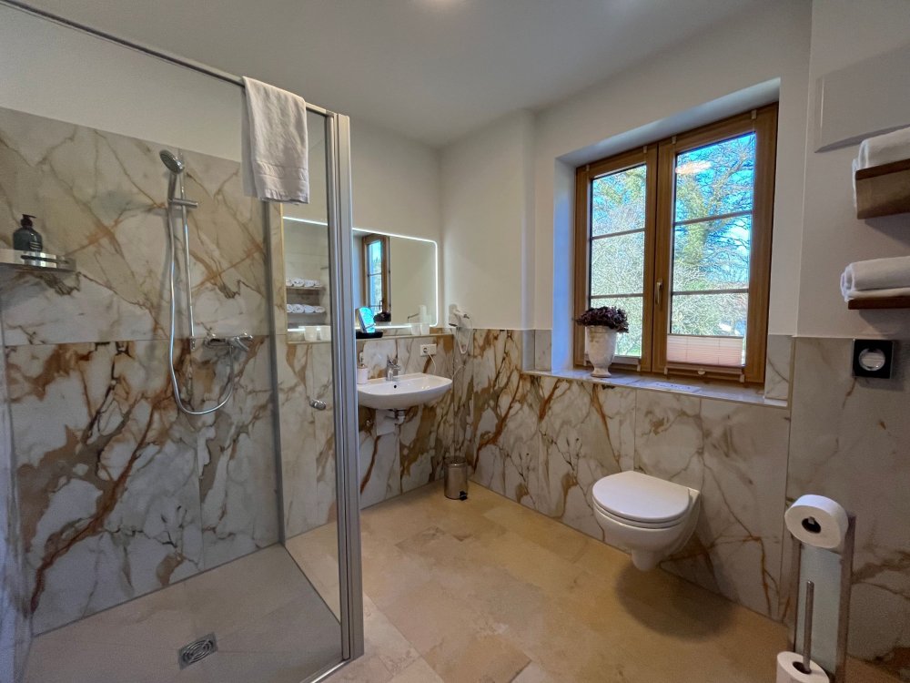 Diese exklusive Ferienwohnung verbindet barrierefreien Komfort, natürliche Materialien und eine idyllische Lage. Genießen Sie den Blick auf Weiher, Hofgarten und Wald und lassen Sie sich von der Ruhe und Schönheit der Natur verzaubern.