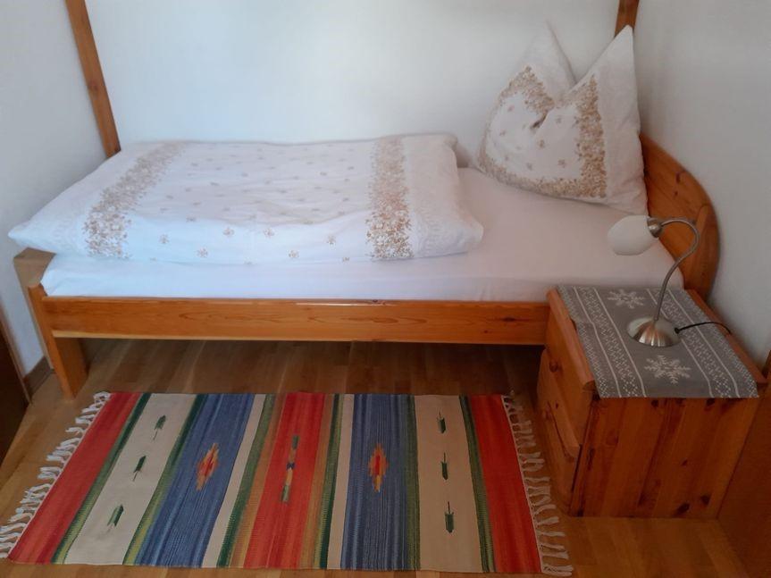 Nebenan befindet sich ein Doppelzimmer mit Westbalkon und angeschlossenem Einbettzimmer - bei Bedarf kann ein Zustellbett für ein zweites Kind bereitgestellt werden.