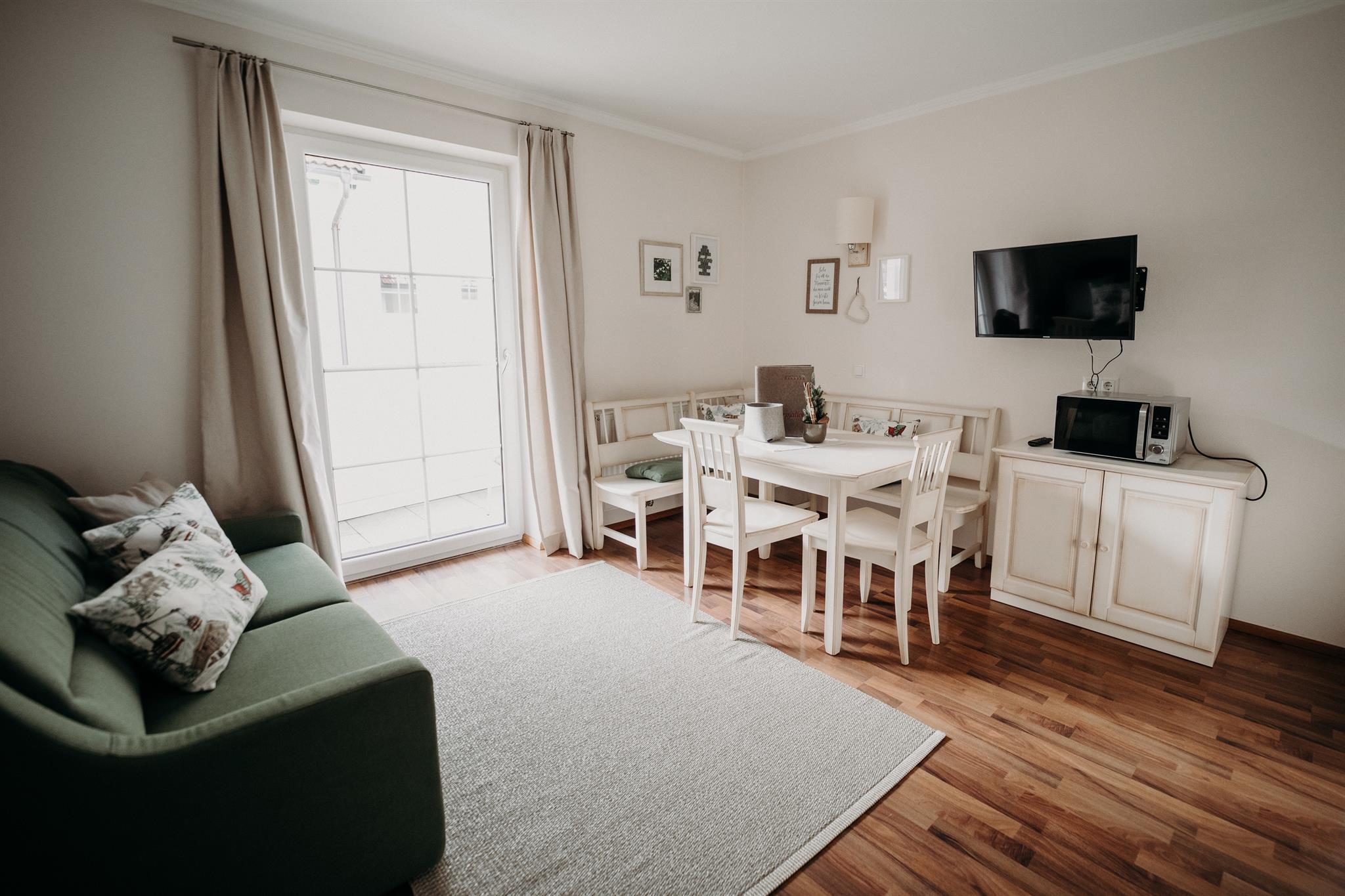 Die Appartements sind modern-alpin gestaltet. Alle Appartements verfügen über einen Balkon oder eine Terrasse.