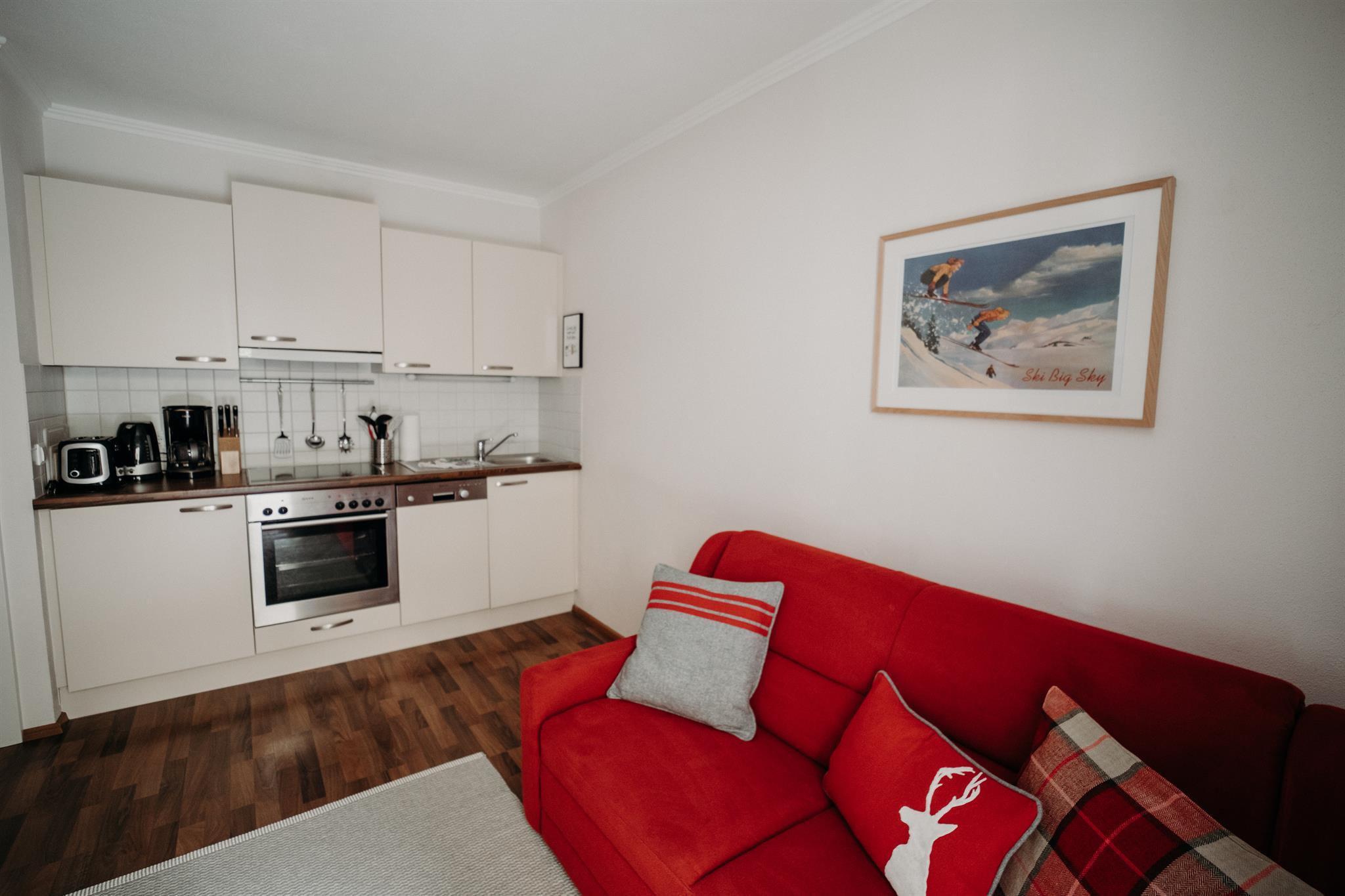 Die Appartements sind modern-alpin gestaltet. Alle Appartements verfügen über einen Balkon oder eine Terrasse.