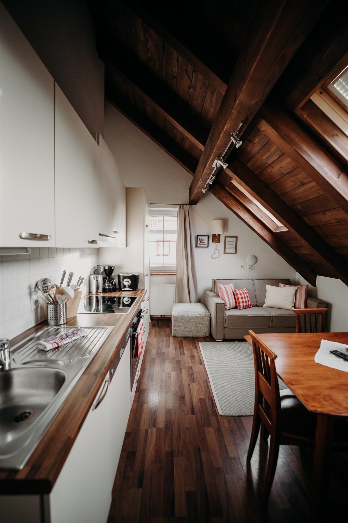 Die Appartements sind modern-alpin gestaltet. Alle Appartements verfügen über einen Balkon oder eine Terrasse.