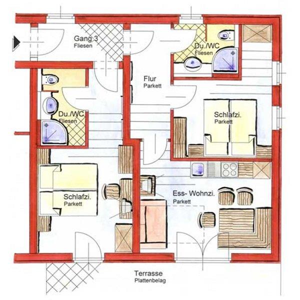 2 Schlafzimmer, 2 Bäder, Wohnschlafraum mit Schlafsofa | für 4 bis 6 Personen | Terrasse oder Balkon | Küchenbereich mit Geschirr, Backofen, 4 elektrische Herdplatten, Kühlschrank mit Gefrierfach, Geschirrspüler, Wasserkocher, Nespresso Maschine