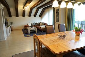 Die großzügige 94qm große Ferienwohnung liegt im Berggebiet von Stadtsteinach und besticht durch ihre ruhige Lage.Mit drei Schlafzimmern, welche jeweils mit einem Doppelbett ausgestattet sind, verfügt die im ersten Stock gelegene Wohnung über genug Schlafmöglichkeiten für bis zu sechs Personen.Das gemütlich eingerichtete Wohnzimmer ist mit einer bequemen Couchecke und TV sowie einem Esstisch ausgestattet. Ob Toaster oder Kaffeemaschine, in der großen und hellen Küche finden Sie alle notwendigen Utensilien für Ihren Ferienaufenthalt.Eine Badewanne sowie eine separate Dusche stehen Ihnen im 12qm großen Badezimmer zur Verfügung.Genießen Sie auf dem Balkon lauschige Abende und den herrlichen Blick auf die Fränkische Linie und den r gemeinsam genutzte Garten bietet ebenfalls eine Sitzmöglichkeit.Kurzbeschreibung 1Anzahl Küchen : 1Küche 1Sonstige Kücheneinrichtung : WasserkocherUmgebungLeihmöglichkeiten : Ski-, Snowboard- oder SchlittenverleihSportmöglichkeiten in der Umgebung : Angeln, Radtouren, Ski (alpin), TennisUmgebung 1Ausflugsmöglichkeiten : Wandern im Frankenwald, Beheiztes Freibad im Ort, Bayerisches Brauereimuseum und Deutsches Zinnfigurenmuseum auf der Plassenburg in Kulmbach (15 km), Deutsches Dampflokmuseum und idea Schmetterlingsparadies in Neuenmarkt (15 km), Anbindung an das FahradwegenetzOrtsbeschreibung : Die Stadt Stadtsteinach liegt im Nordosten von Oberfranken an der sog. Fränkischen Linie, wobei zwei Landschaftseinheiten zusammentreffen. Im Nordosten wird die Stadt durch die steil aufragenden Frankenwaldhänge (Ausläufer des Thüringer Schiefergebirges) begrenzt und im Südwesten durch die vorwiegend landwirtschaftlich genutzten flacheren Hänge des obermainischen Hügellandes.Garten und AussenanlagenGartenausstattung : Gartenmöbel vorhanden