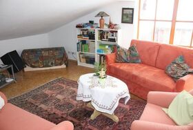 Absolut ruhige Alleinlage in Bischofswiesen; gemütliche Dachgeschoßwohnung (110 m2) im 2. Stock. Mit eigenem Eingang, 2 Schlafz., 2 Bäder. Schöne Ausstattung mit Korkböden (gut für Allergiker). Zum Wohnzimmer offene Küche mit Essplatz und Küchenzeile. Großer, sonniger Balkon. Sonnige Ortsrandlage in 650 m Höhe. An das Grundstück grenzt eine Wiese sowie ein Bergwald. Absolut ruhig, aber Zentrumsnah: Ortsmitte ca. 700 m, Bahnhof ca. 500 m, Bushaltestelle ca. 1 km, Bäcker, Metzger, Gasthäuser zu Fuß erreichbar, 2 km zum Ski- und Snowboardgebiet Götschen, etwa 7 Minuten nach Berchtesgaden, 12 Minuten nach Bad Reichenhall, 15 Minuten zum Königssee, 20 Min zum Airport oder in die Stadt Salzburg. Für Kinder bietet das Gelände viel Platz und Spielmöglichkeiten. Sie ist idealer Ausgangspunkt für Wanderungen, Spaziergänge, Ausflüge und Wintersportaktivitäten (Langlauf, Ski-alpin, Rodeln). Parkplatz, Garten mit Liegestühlen, Sonnenschirm.