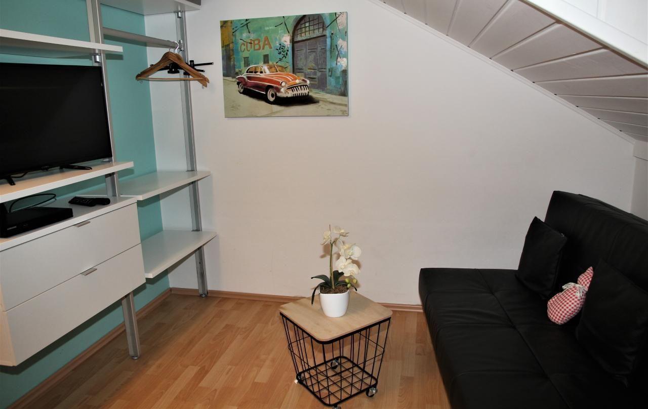 Wohnen: Doppelsofa; DVD-Player; Musikanlage; Radio; TV