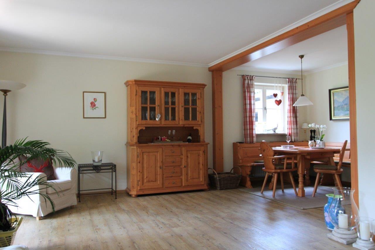 + Großes, helles Wohn-/Esszimmer (Bergblick) mit gemütlicher, bayerischer Essecke