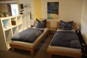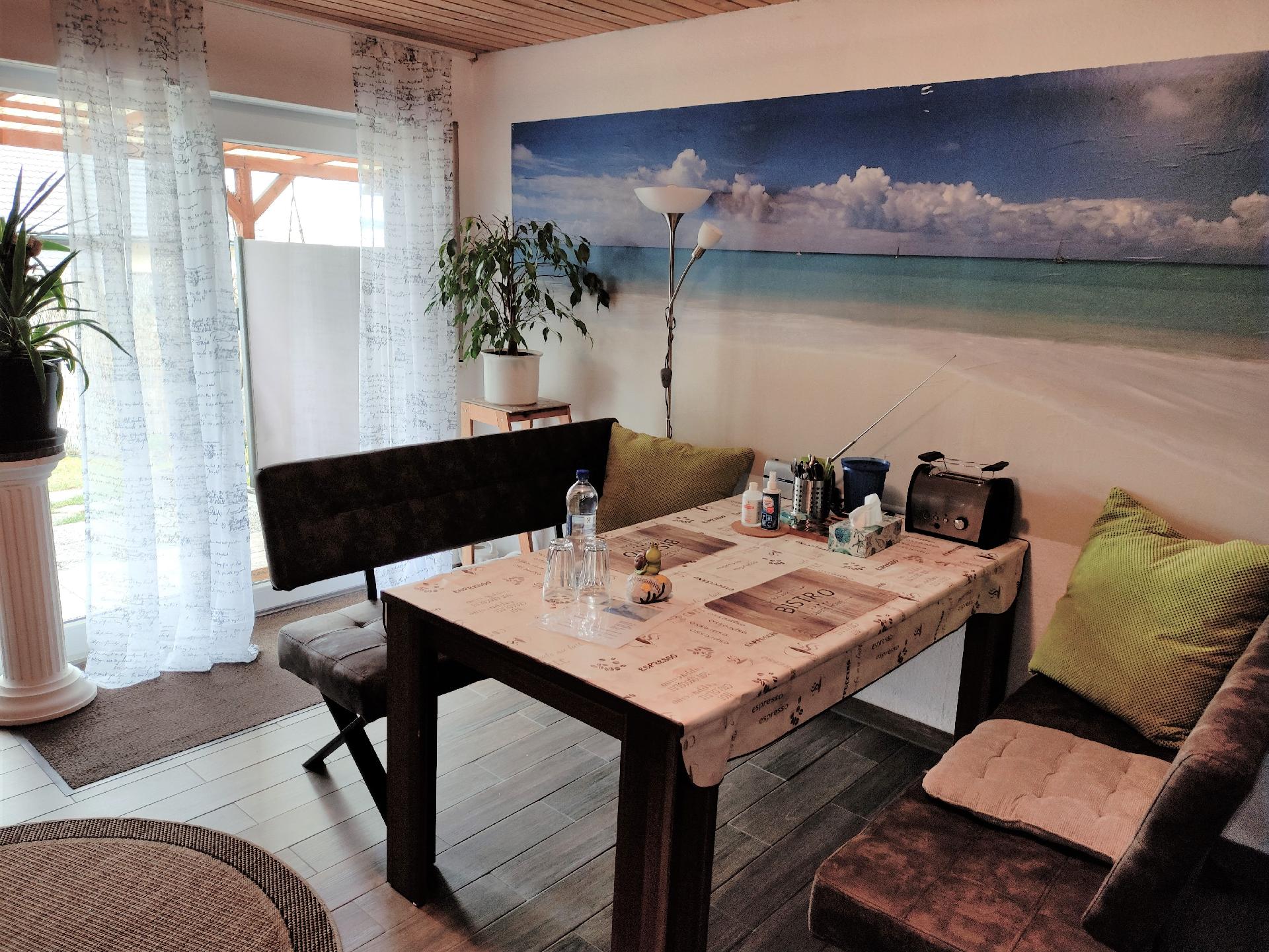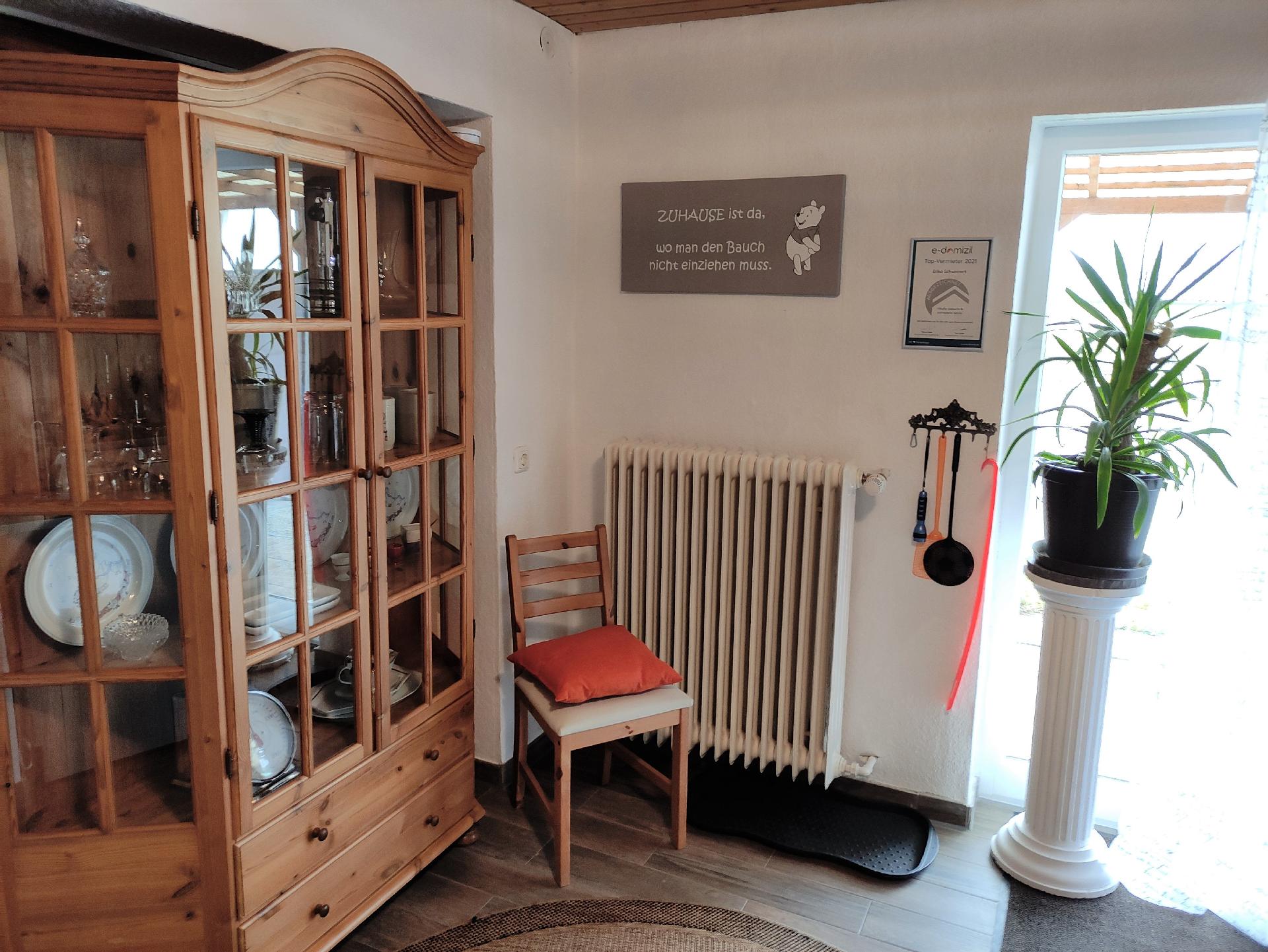 Durch den Garten gelangen Sie zum Eingang der komplett renovierten FeWo Loni.Sie betreten die ca. 30 qm große Küche mit Essbereich.Nebenan erwartet Sie das großzügige (40 qm) Wohn-Schlafzimmer mit gemütlicher Wohnlandschaft ( ausziehbar 1,40 x 2 m), ein großer TV-Flat und ein Schwedenofen für romantische Abende zu Zweit.Die Terrassentüre führt zu Ihren überdachten Grillplatz mit gemütlicher Sitzecke sowie separates Raucherplän Garten teilen Sie mit unserer zweiten r Schlafzimmerbereich verfügt über zwei Einzelbetten, auf Wunsch auch als Doppelbett möglich. Der große Kleiderschrank und viele nette Kleinigkeiten sorgen für ein harmonisches Wohngefühl.Im Bad befinden sich Dusche und WC, sowie ein Aussenfenster.Parkplätze vor dem Haus.Abschließbare Unterstellmöglichkeit für Fahrräder und Motorräder vorhanden.E-Biker können bei uns kostenlos auftanken.Metzger und Bäcker sind fußläufig zu erreichen, Supermärkte mit dem Auto in ca. 3 Min.KurzbeschreibungSonstiges : NichtraucherhausKurzbeschreibung 1Anzahl Küchen : 1Sonstige Räume : großes Wohn-SchlafzimmerWohnzimmer 1Sonstige Wohnzimmerausstattung : Kommode, Wohnzimmertisch, großzügige Couchecke, kleines Regal, großer TV-Flat, Teppichboden, optischer Raumteiler zum Schlafbereich, Kaminofen.Küche 1Sonstige Kücheneinrichtung : Geschirr und Besteck für 4 Personen, Koch und Küchenutensilien usw. mehr als ausreichend vorhanden. Geschirrspülmaschine vorhanden.Große Glasvitrine, Esstisch plus gemütliche Sitzbänke, Boden gefliest..KurzbeschreibungSonstiges : NichtraucherhausKurzbeschreibung 1Anzahl Küchen : 1Sonstige Räume : großes Wohn-SchlafzimmerWohnzimmer 1Sonstige Wohnzimmerausstattung : Kommode, Wohnzimmertisch, großzügige Couchecke, kleines Regal, großer TV-Flat, Teppichboden, optischer Raumteiler zum Schlafbereich, Kaminofen.Küche 1Sonstige Kücheneinrichtung : Geschirr und Besteck für 4 Personen, Koch und Küchenutensilien usw. mehr als ausreichend vorhanden. Geschirrspülmaschine vorhanden.Große Glasvitrine, Esstisch plus 4 gemütliche Sitzgelegenheiten, Boden gefliest.
