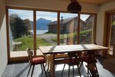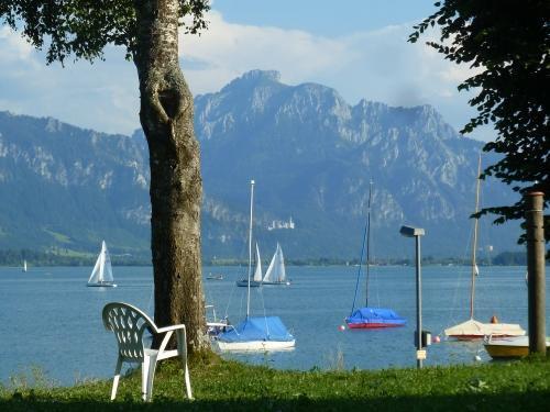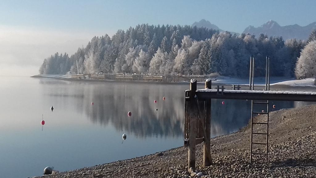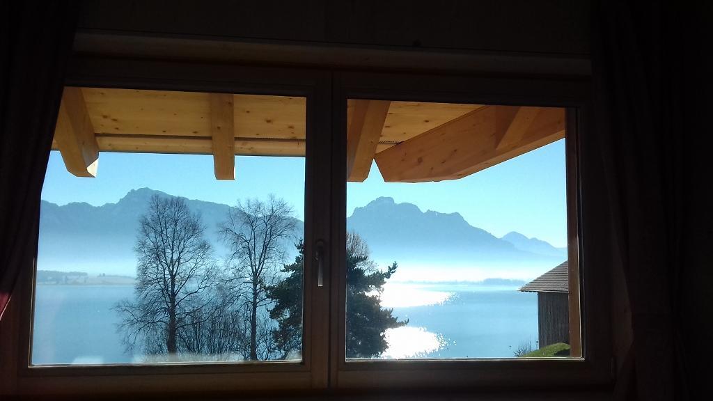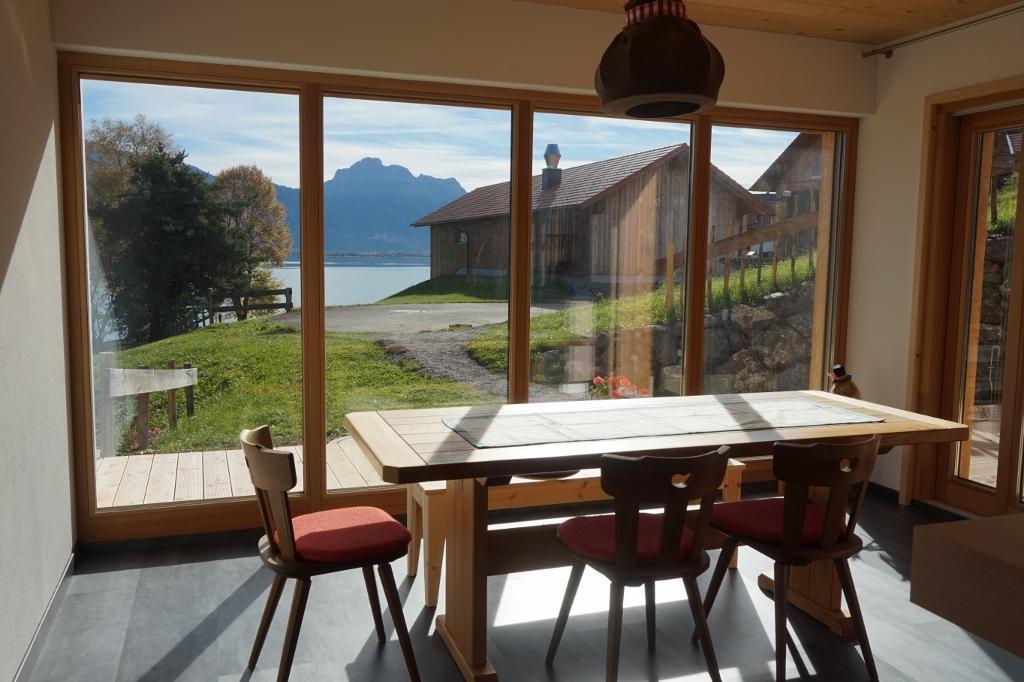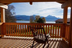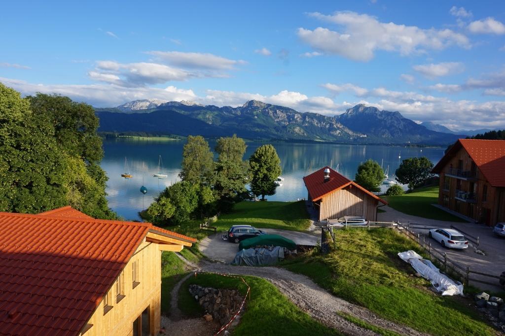 Außergewöhnlich ist die idyllische Lage mit freiem Blick auf See und Berge. Privates Wohnen mit Familie und Freunden auf Top-Niveau. Erleben Sie den natürlichen Flair eines Holzhauses mit Vollholzwänden und erfreuen Sie sich an der exklusiven und allgäu-typischen Wohnumgebung. Vom Balkon genießen Sie die Ruhe, das Rauschen der Wellen vom See, rundum grüne Wiesen und gesundes Klima... und zahllose Ausflugsziele in kurzer m See so nah: hier ist es Wirklichkeit. Sie nutzen den privaten Badestrand am Forggensee - direkt vor der Terrassentür.Dieses luxuriöse Chaletapartment bietet 150m2 Wohnfläche und erstreckt sich über das Erdgeschoss und das Obergeschoss des Ferienchalets. Im Erdgeschoss liegt das Wohnzimmer mit Couchmöbeln, Lese-Ecke und großem Esstisch. Für Unterhaltung sorgt ein großer Flachbildschirm. Die offen gestaltete und geräumige Designer-Küche ist mit Kühlschrank, Backofen, Infrarotkochfeld , Kaffeemaschine und Geschirrspülmaschine voll ausgestattet und beinhaltet auch eine Bartheke sowie den urigen Eichenholz-Esstisch mit Aussichtsbank. Durch die Hanglage gibt es auf der einen Seite Zugang zu einem schönen Balkon mit Esstisch und Ausblick auf den See. Die Richtung Hang gewandte Seite bietet eine große Holzterrasse mit Sitzmöbeln und Liegestühlen. Ein separates Tages-WC mit Waschmaschine und Trockner sowie die Garderobe neben dem Eingang komplettieren die Ausstattung auf dieser Etage.Durch eine Treppe gelangt man in das durch die offenen Holzbalken besonders gemütliche wirkende Dachgeschoss. Auf dieser Ebene liegen drei Schlafzimmer und zwei zugehörige Badezimmer. Das größte Schlafzimmer ist mit Doppelbett, TV, Balkon mit Morgensonne, geräumigem Schrankraum sowie eigenem Badezimmer en-suite mit Rainfall-Dusche, Badewanne und WC besonders komfortabel ausgestattet. Das zweite Doppelschlafzimmer ist mit Boxspring-Betten möbliert und bietet vom Bett aus Blick auf den See. Das dritte Schlafzimmer ist mit zwei Einzelbetten ausgestattet und ideal für Kinder geeignet. Für die weiteren beiden Schlafräume steht ein Badezimmer mit Dusche und WC zur Verfügung. Vor diesen Zimmern liegt die gemütliche Dach-Galerie mit Couch und Zugang zum großen Panorama-Balkon, der einen traumhaften Ausblick auf den See, die Berge und die Königsschlösser bietet.KurzbeschreibungSonstiges : NichtraucherhausKurzbeschreibung 1Anzahl Küchen : 1Wohnzimmer 1Sonstige Wohnzimmerausstattung : Grosser Chill-Out-Sessel und kleine Bibliothek, 50-Zoll-Flat-TVSchlafzimmer 1Sonstige Schlafzimmereinrichtung : Boxspring-Betten, grosses separates Ankleidezimmer und en-suite-Badezimmer, Balkon mit MorgensonneSchlafzimmer 2Sonstige Schlafzimmereinrichtung : Boxspring-Betten, grosses Fenster mit See- und BergblickSchlafzimmer 3Sonstige Schlafzimmereinrichtung : Gemütliche Vollholz-MöbelWohnzimmer 2Sonstige Wohnzimmerausstattung : Galerie im Dachgeschoss mit Panoramafenster und SchaukelstuhlUmgebungLeihmöglichkeiten : BootsverleihSportmöglichkeiten in der Umgebung : Angeln, Bergsteigen, Eislaufen, Golfplatz, Kanu, Klettern, Mountainbiking, Paragliding, Radtouren, Reithalle, Reitplatz / Reitmöglichkeiten, Rodeln, Rudern, Segeln, Ski (Langlauf), Ski (alpin), SurfenUmgebung 1Ausflugsmöglichkeiten : Unser Allgäu - ursprüngliche und vielfältige Natur am Alpenrand: grüne Wiesen, Kühe, Almen, Alpengipfel, Seenland: Optimal zum Radeln und Wandern. Zu jeder Jahreszeit. Als Highlight: Die Schlösser Neuschwanstein und Hohenschwangau und die romantische Altstadt in Füssen.Ortsbeschreibung : Der kleine Ort Dietringen liegt malerisch direkt am See und liegt abseits der Bundesstrasse.Garten und AussenanlagenFreizeiteinrichtungen am Objekt : SaunaGartenausstattung : Gartenmöbel vorhanden, GrillServiceleistungenServiceleistungen (ggfs. kostenpflichtig) : Brötchenservice, Einkaufsservice vor der Anreise, Frühstück