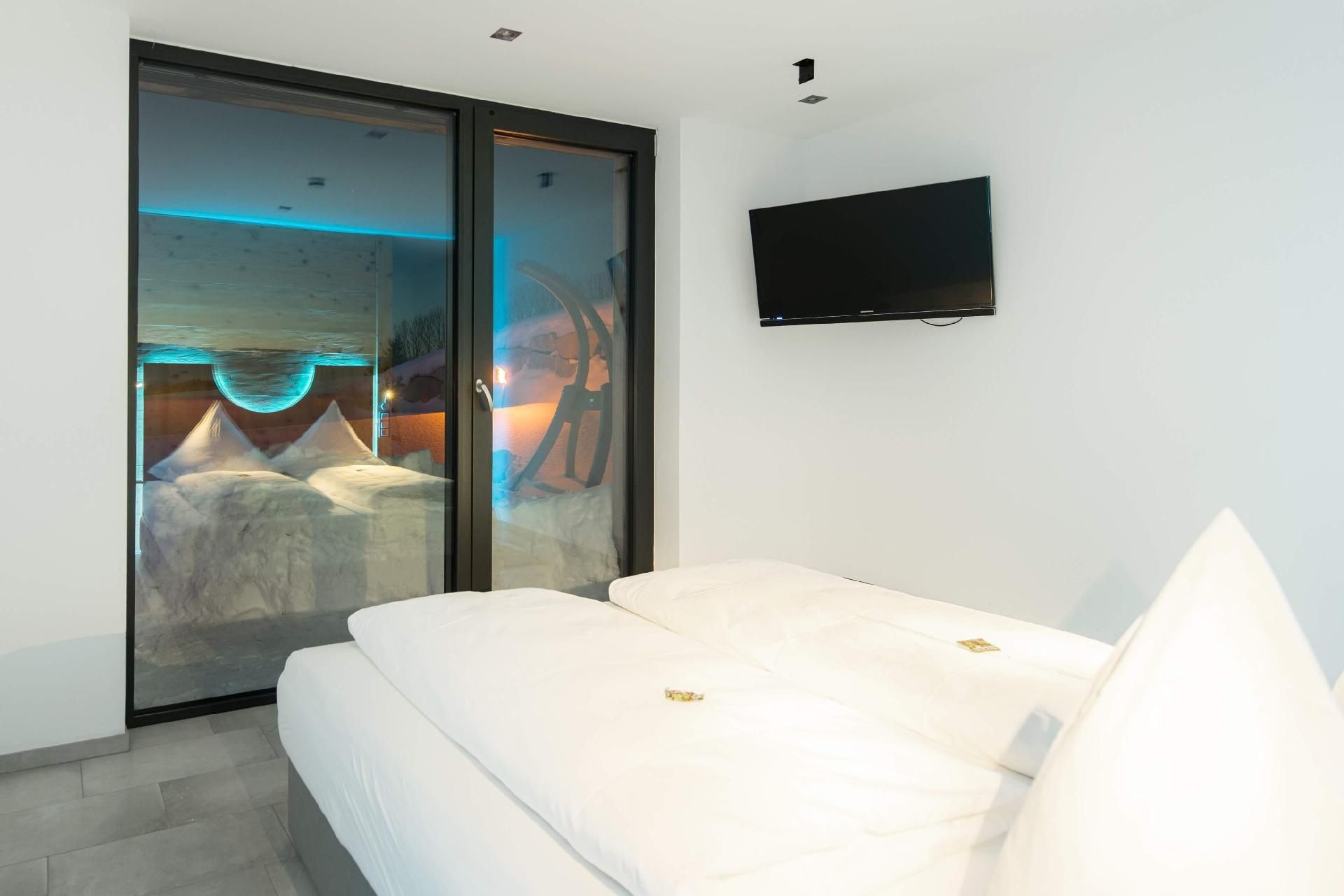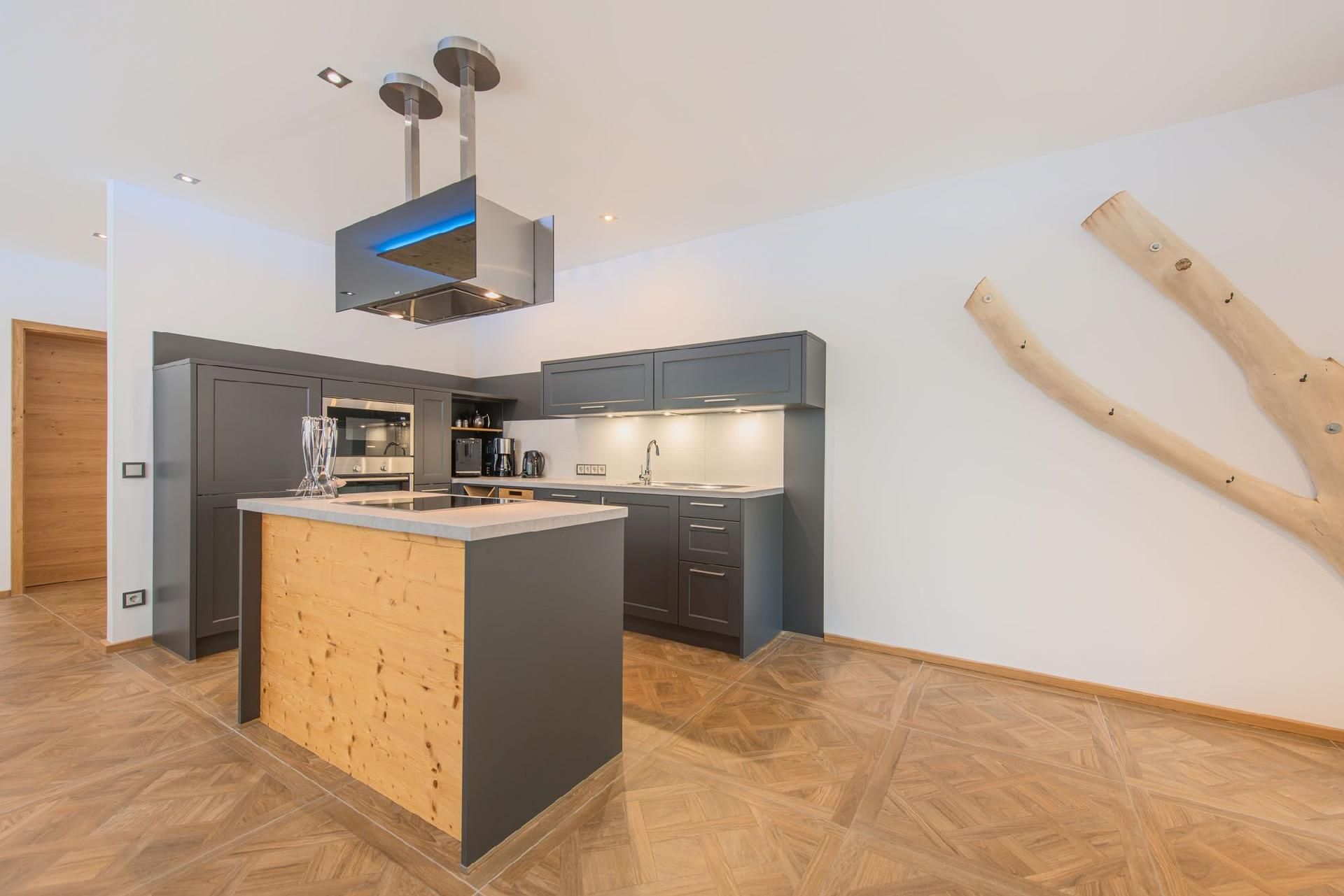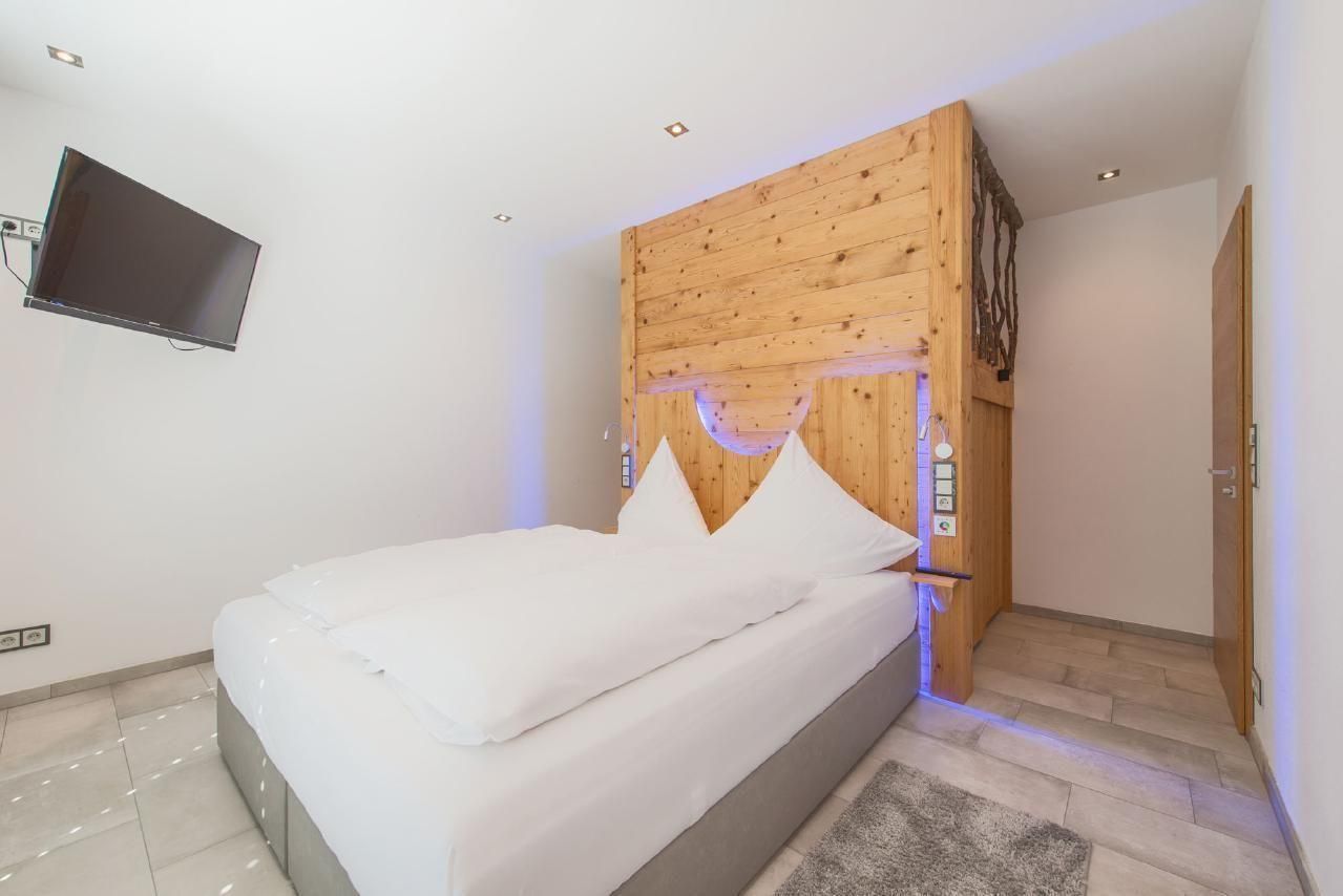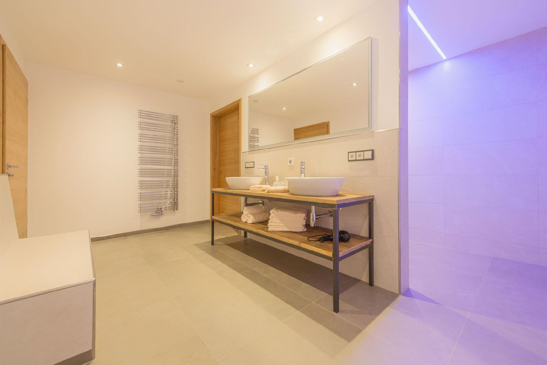Das Herzstück des Hauses bildet der über 50qm große Wohn- und Wohlfühlbereich, der mit einer hochwertig ausgestatteten Küche, einem handgefertigten Eichentisch und einem gigantischen Riesensofa ausgestattet ist. Genießen Sie hier Dolby-Surround-Sound und die spektakuläre Aussicht durch das bodentiefe Fenster. Eine offene Whirlwanne mit Blick auf die Natur, zwei Schlafzimmer mit eigenem TV, extralangen Doppelbetten und einer kleinen Galerie für Kinder, sowie ein Badezimmer mit Wärmebank, geräumiger Dusche mit Schwall- und Tropenregenanlage und direktem Zugang zur Sauna runden das hochwertige Wohnangebot ab.