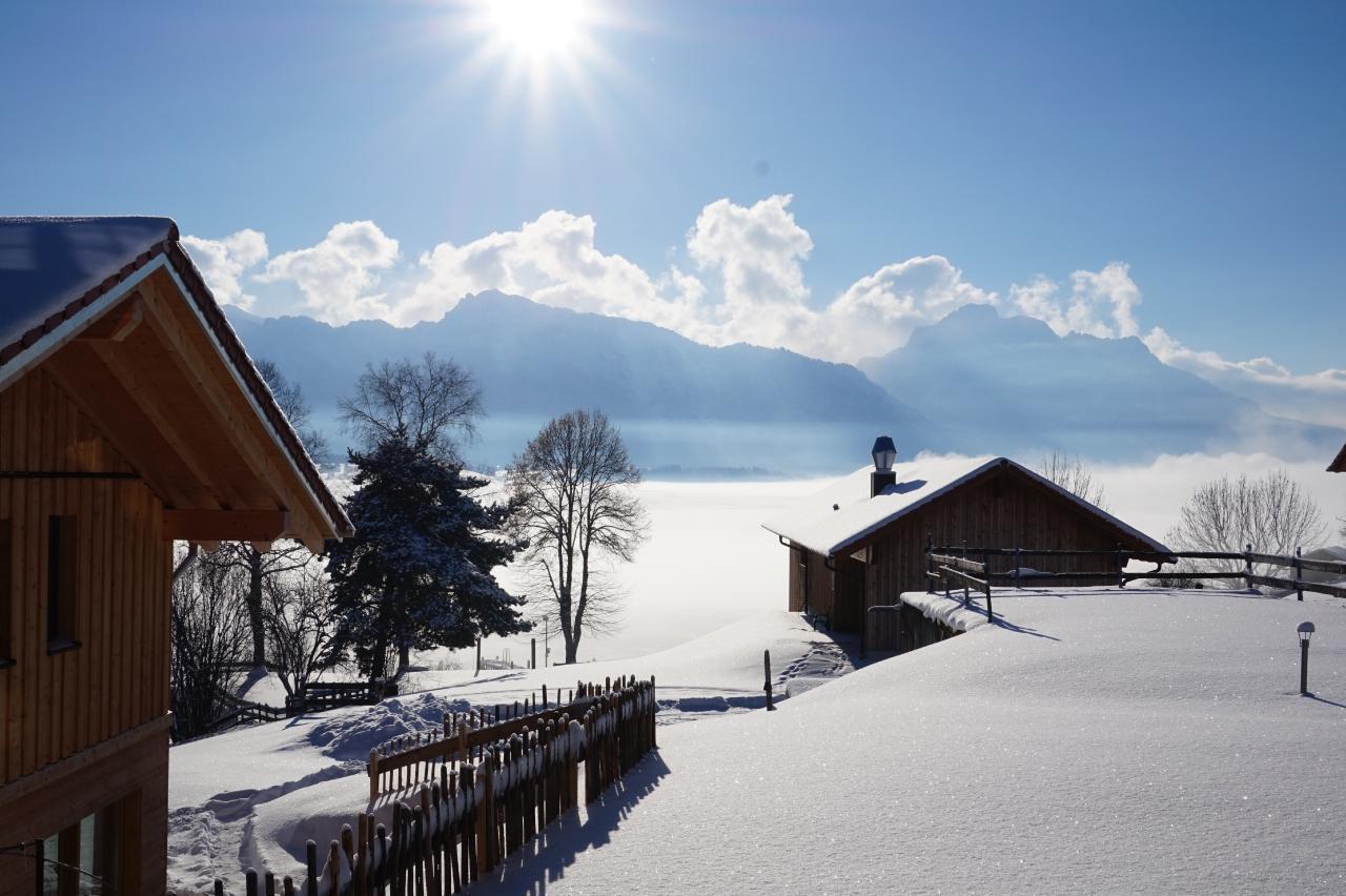 Das mit viel alpinem Flair eingerichtete Appartement hat 74m2 Wohnfläche und liegt im Untergeschoss des Ferienhauses. Aufgrund der Hanglage bietet es direkten Zugang zum großzügig angelegten privaten Garten und zu einer schönen südseitig gelegenen Sonnenterrasse. Hier stehen Bank, Liegestühle und Sonnenschirm zum Entspannen bereit. Die Wohnung verfügt über ein großes Schlafzimmer mit Doppelbett und Zirbenholzmöbeln für einen gesunden und erholsamen Schlaf. Der zweite Schlafraum hat ein Einzelbett, so dass insgesamt drei Personen übernachten können. Für alle Gäste stehen ein Badezimmer mit Wellness-Dusche und Badewanne sowie eine separat liegende Toilette zur Verfügung. Die mit Backofen, Geschirrspüler, Kaffeemaschine und Wasserkocher vollausgestattete großzügige Küche verfügt über eine Sitzecke. Im schönen Wohnzimmer befindet sich eine gemütliche Couch vor dem LED-Satelliten-TV. Durch die große Glasfront vor der Terrasse kommt viel Licht in den Raum und es eröffnet sich ein herrlicher Blick auf den nur 20 Meter entfernt liegenden See und das dahinter liegende Bergpanorama.